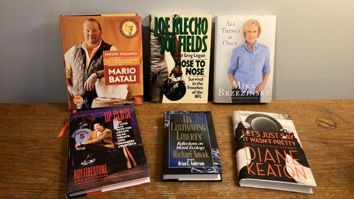 Books are in good to very good displayed condition, with dust jackets intact. A fun mix for fans of celebrity autobiographies, sports tales, cooking, and Hollywood insights. Most signatures are personalized inscriptions, making this a charming personalized collection.
