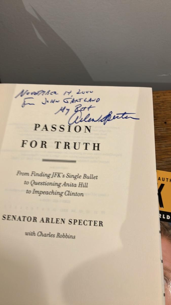 - Passion for Truth by Arlen Specter (with Charles Robbins; memoir covering JFK's single bullet theory, Anita Hill, and Clinton impeachment; signed and dedicated)