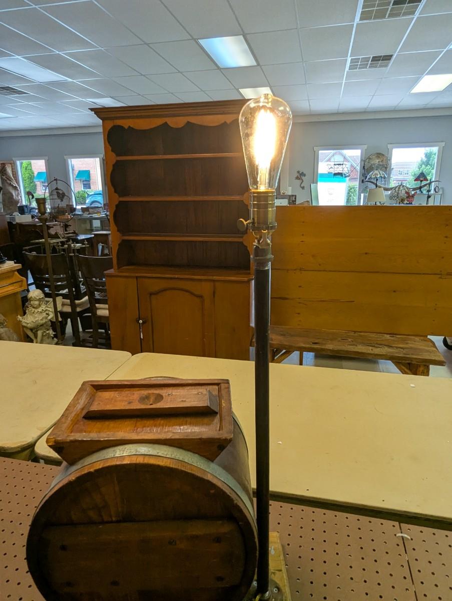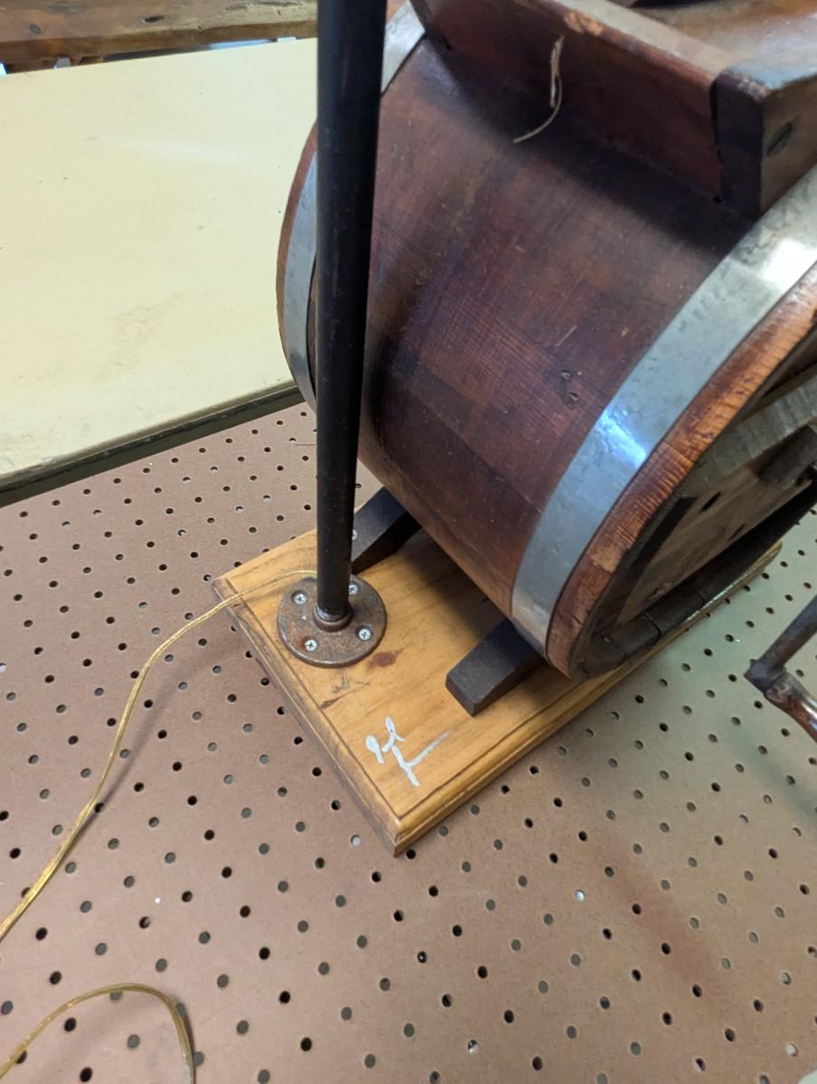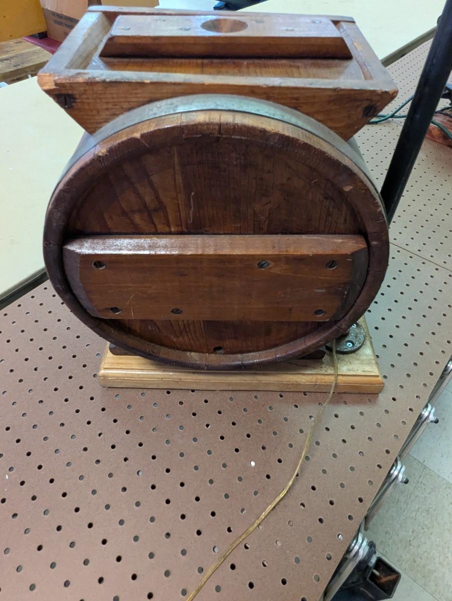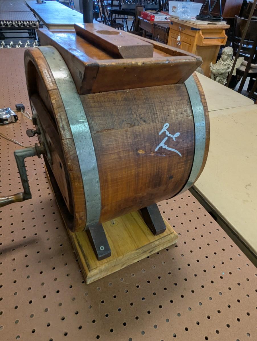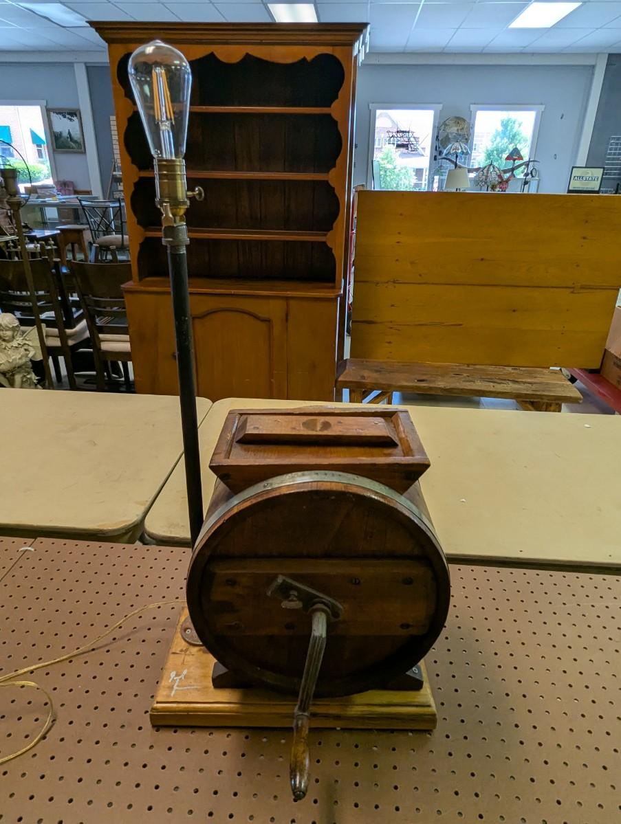 Artist Signed Heavy Antique Wooden Barrel Hand Crank Tabletop Lamp Butter Churn Large Primitive Works! Wheel Turned