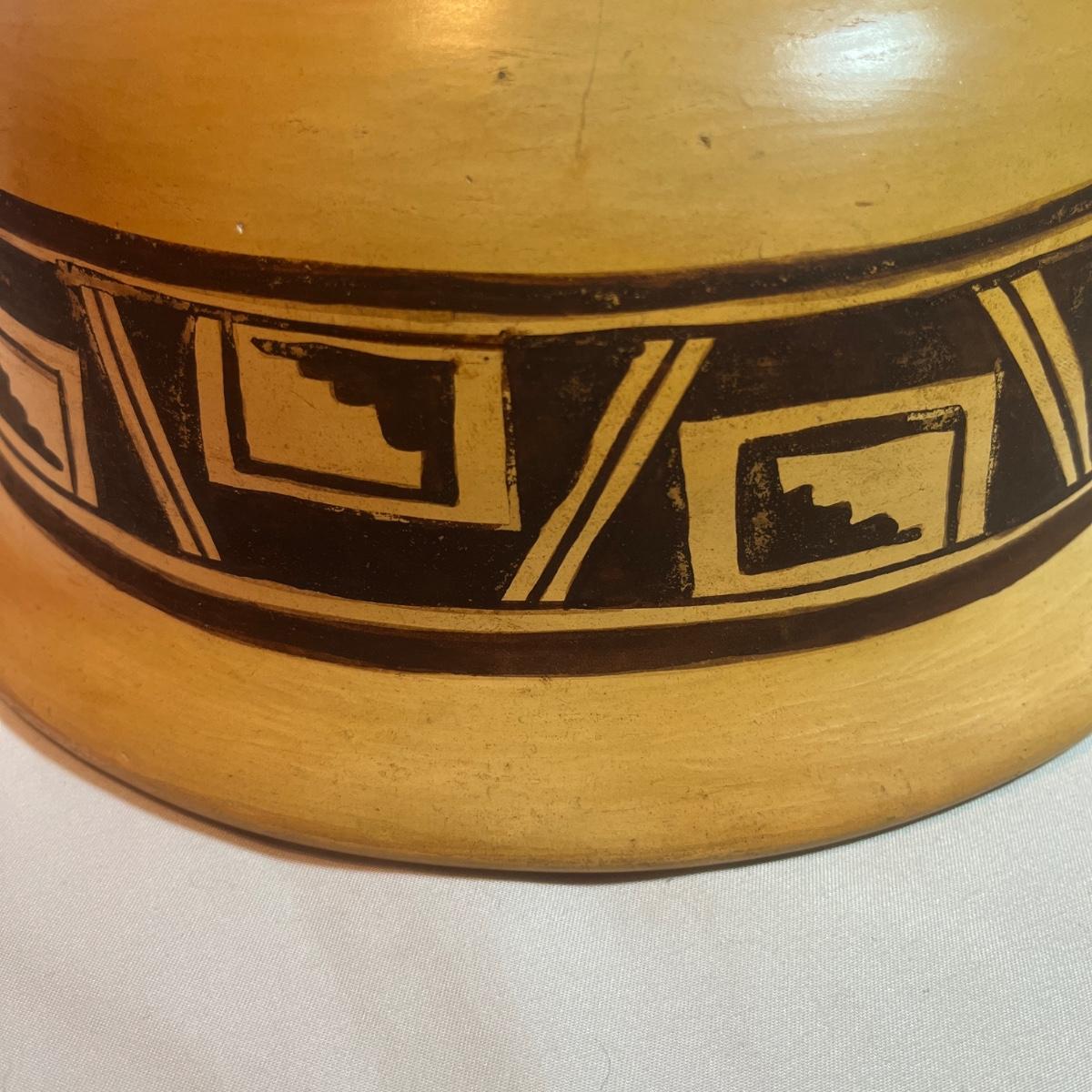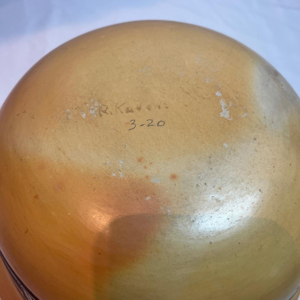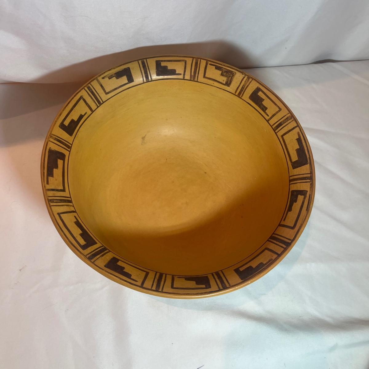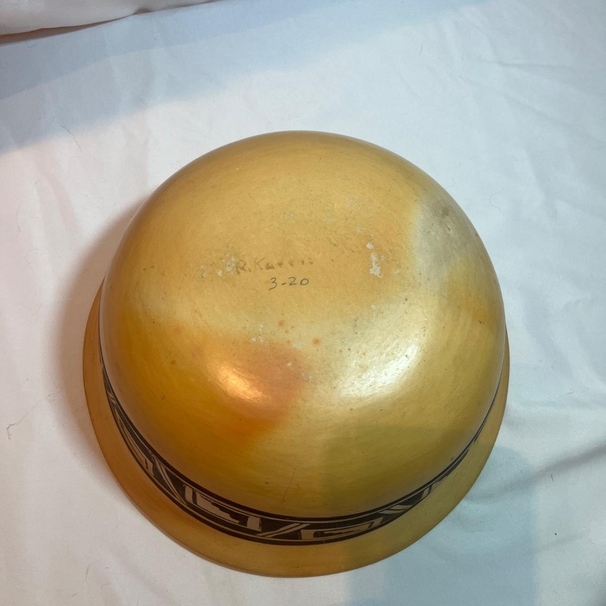 This signed Hopi Southwest pottery bowl measures 9.5”D x 4”H. Bowl has a mark on the inside, see pictures. There is a signature on the bottom of the bowl.