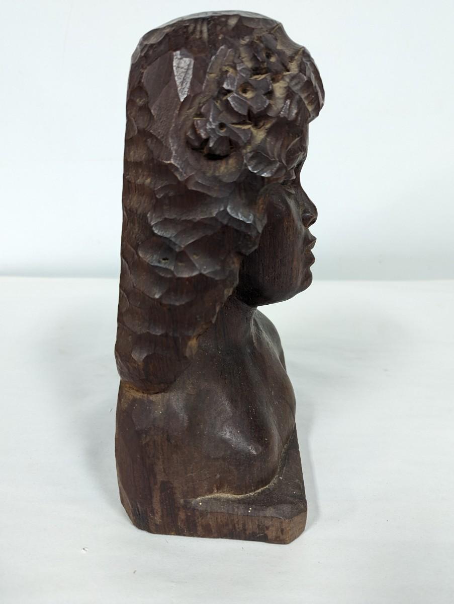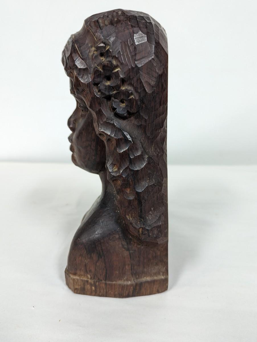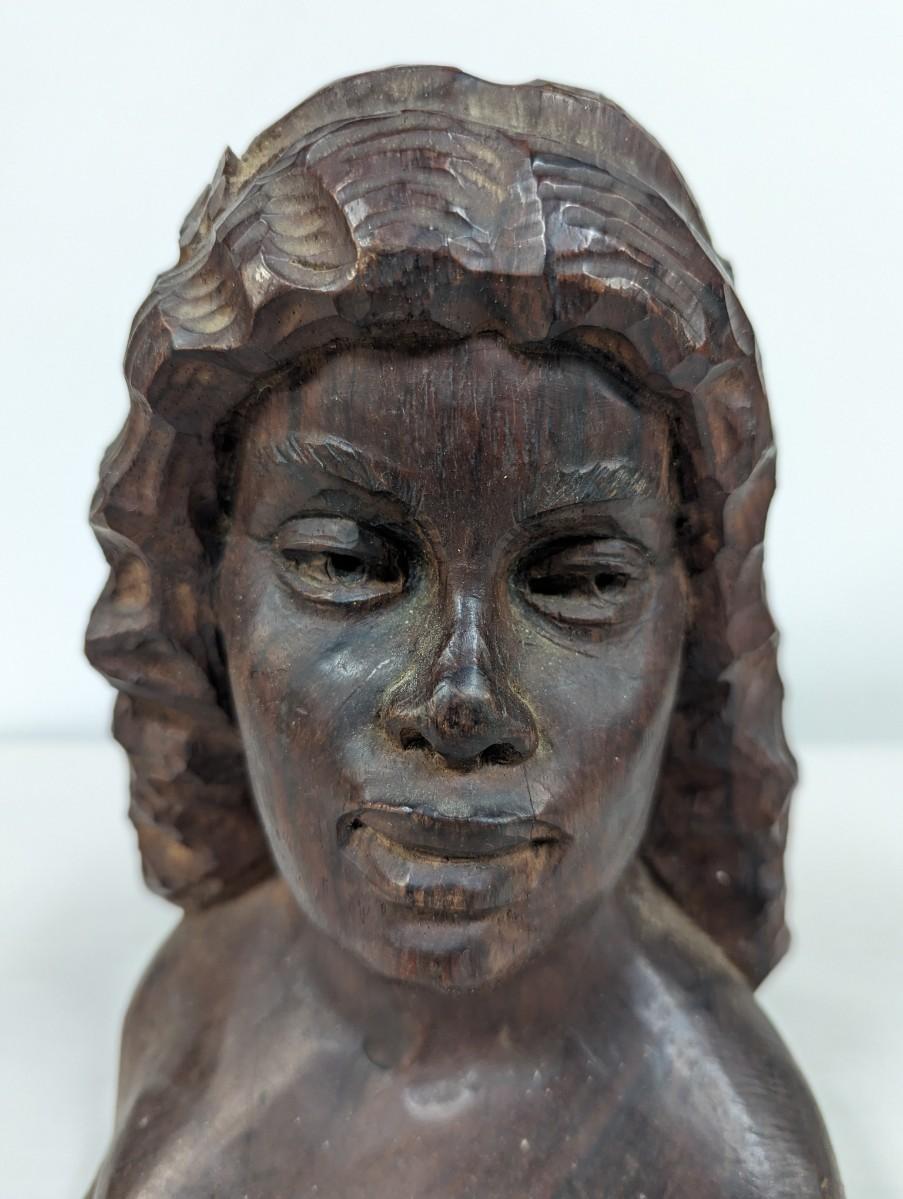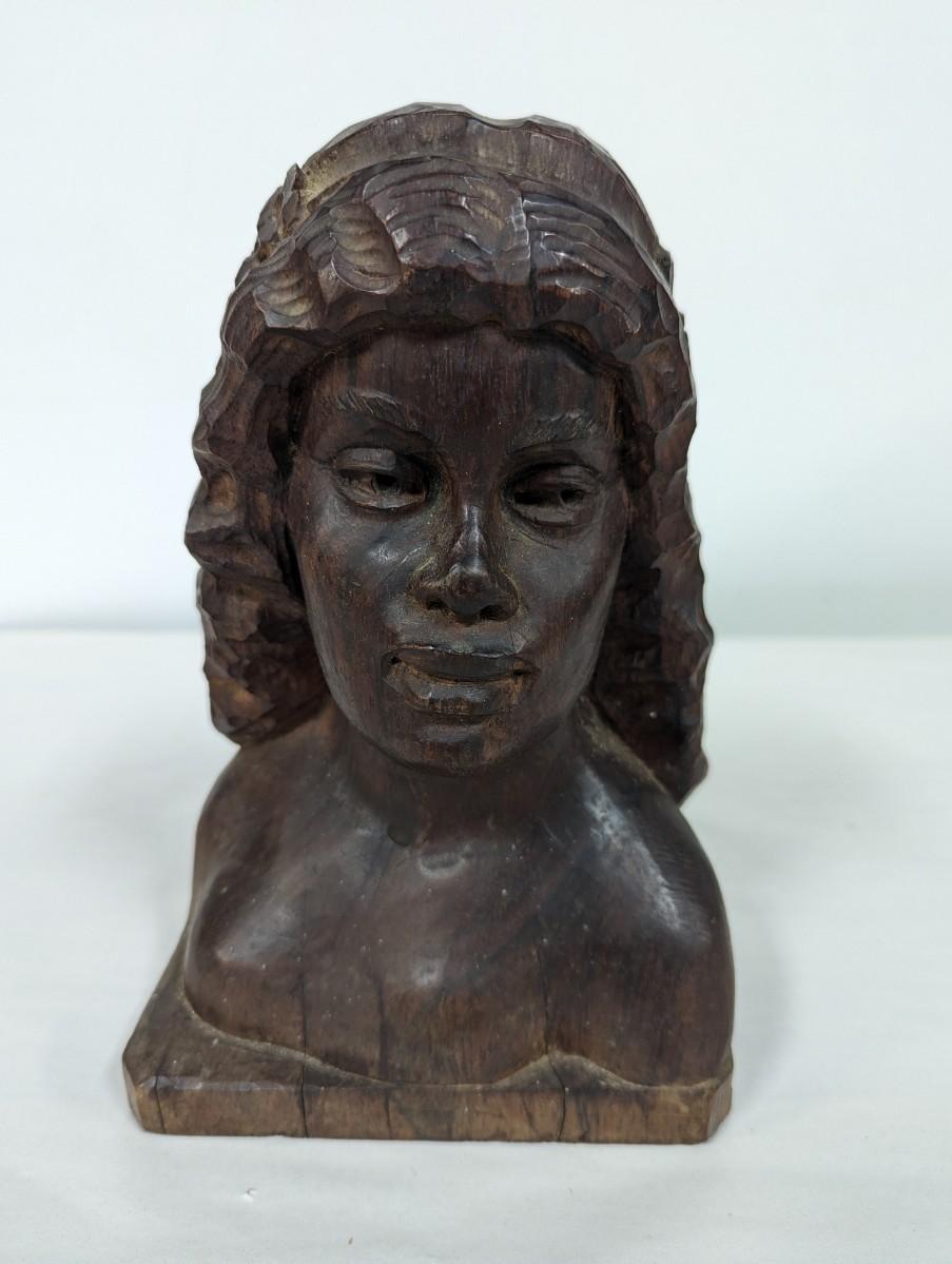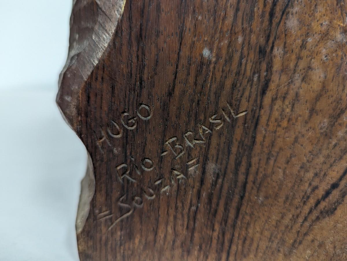 Signed Hugo Souza Rio Brazil Hand Carved Wood Bust Statue Sculpture
