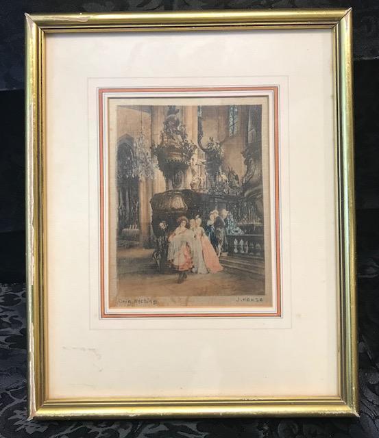 SIGNED J Hamza Mother & Child in Church Etching