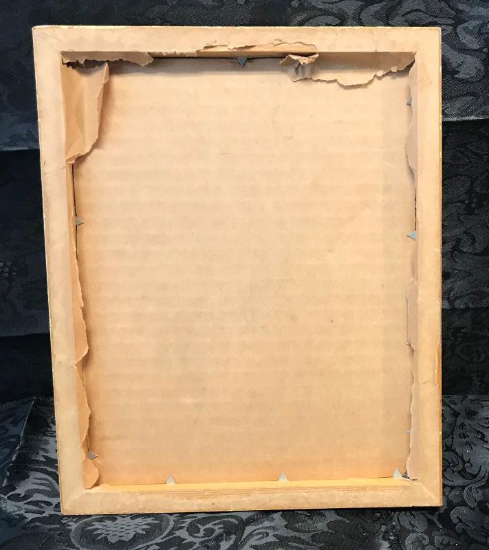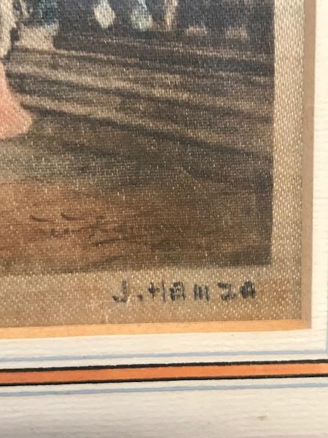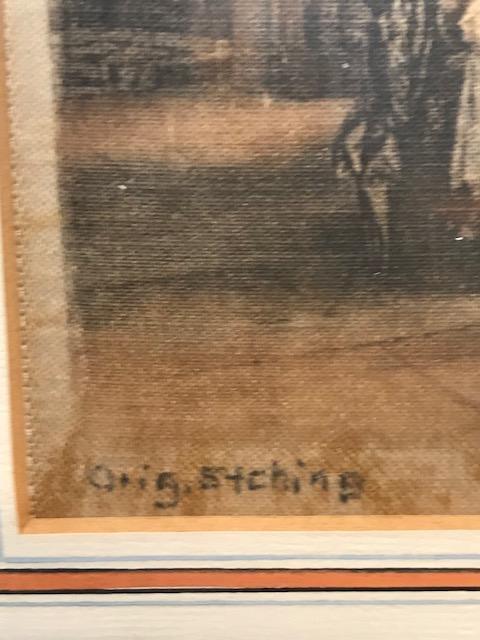 Description: Signed J Hamza Mother & Child in a Church etching. Measurement approximate: 6 H X 4.50 W framed 10.75 H X 9 W. Material: Color Etching on fabric. Shipping cost $20 Excluding California, Alaska & Hawaii.