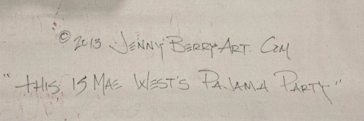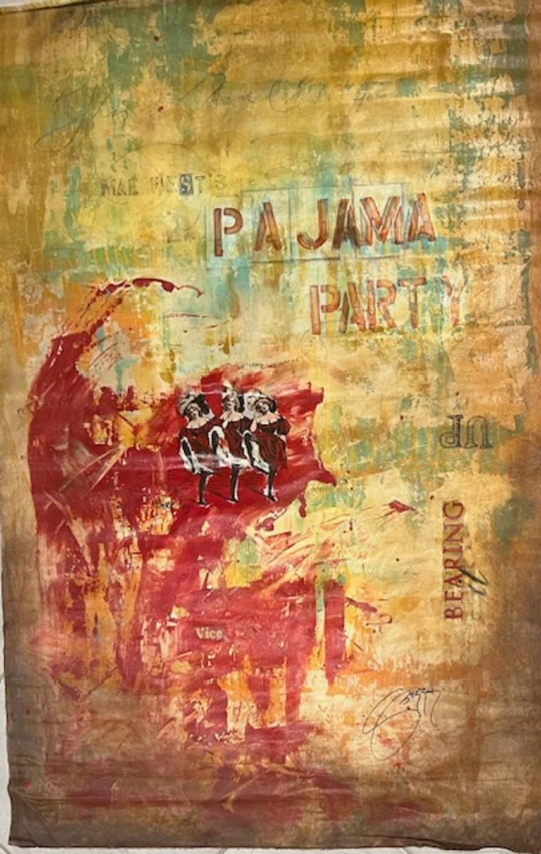 “This Is Mae West’s Pajama Party.” This piece is original and is mixed media/acrylic on canvas. 53" L 35" W. This piece is unframed, and has been rolled for storage.