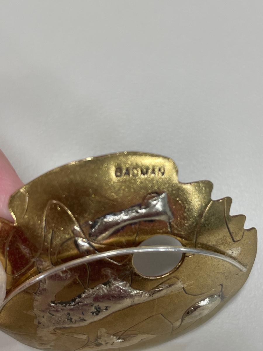 Gold round native pin signed Badman