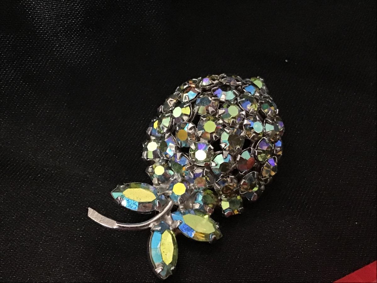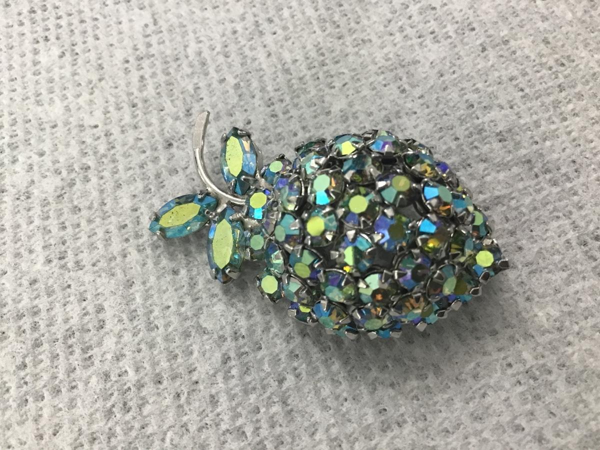 Signed. Joseph Signed Warner Gorgeous Vintage AB Blue Rhinestone Strawberry Pin