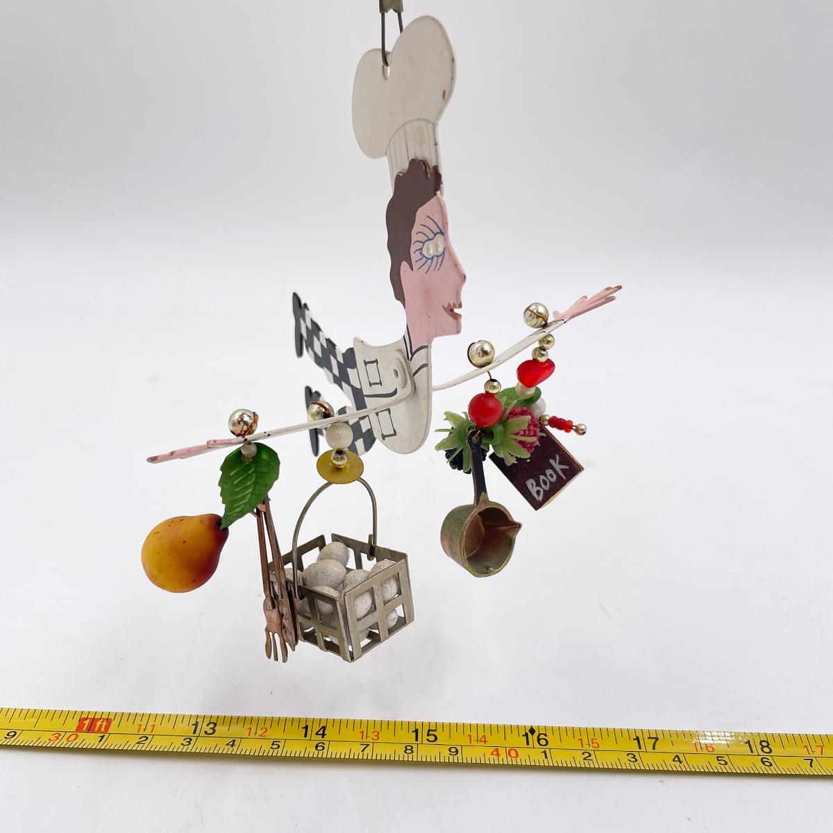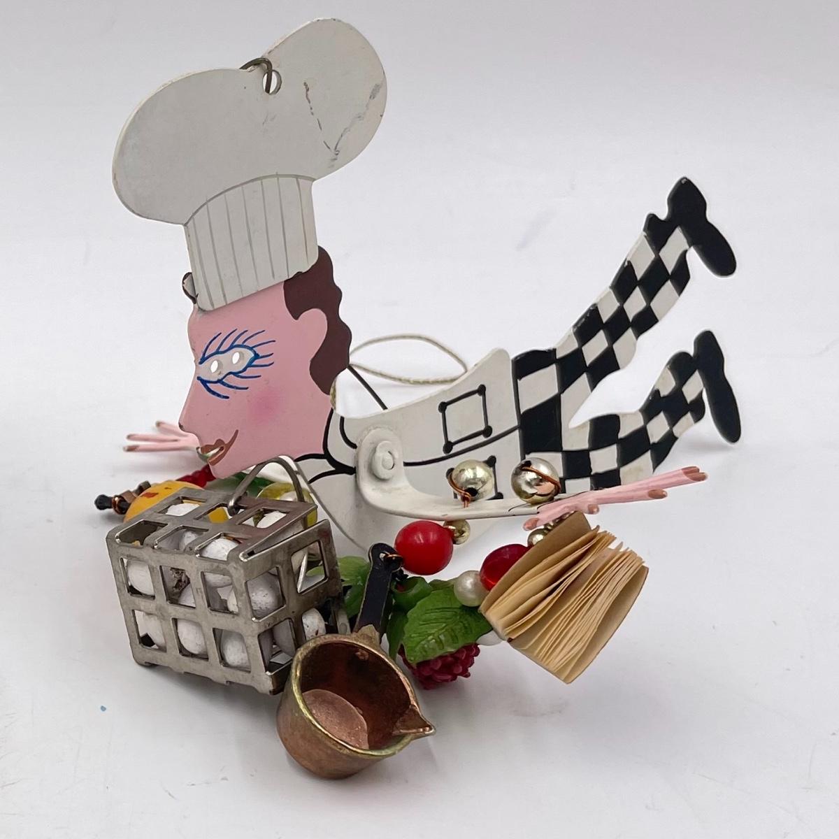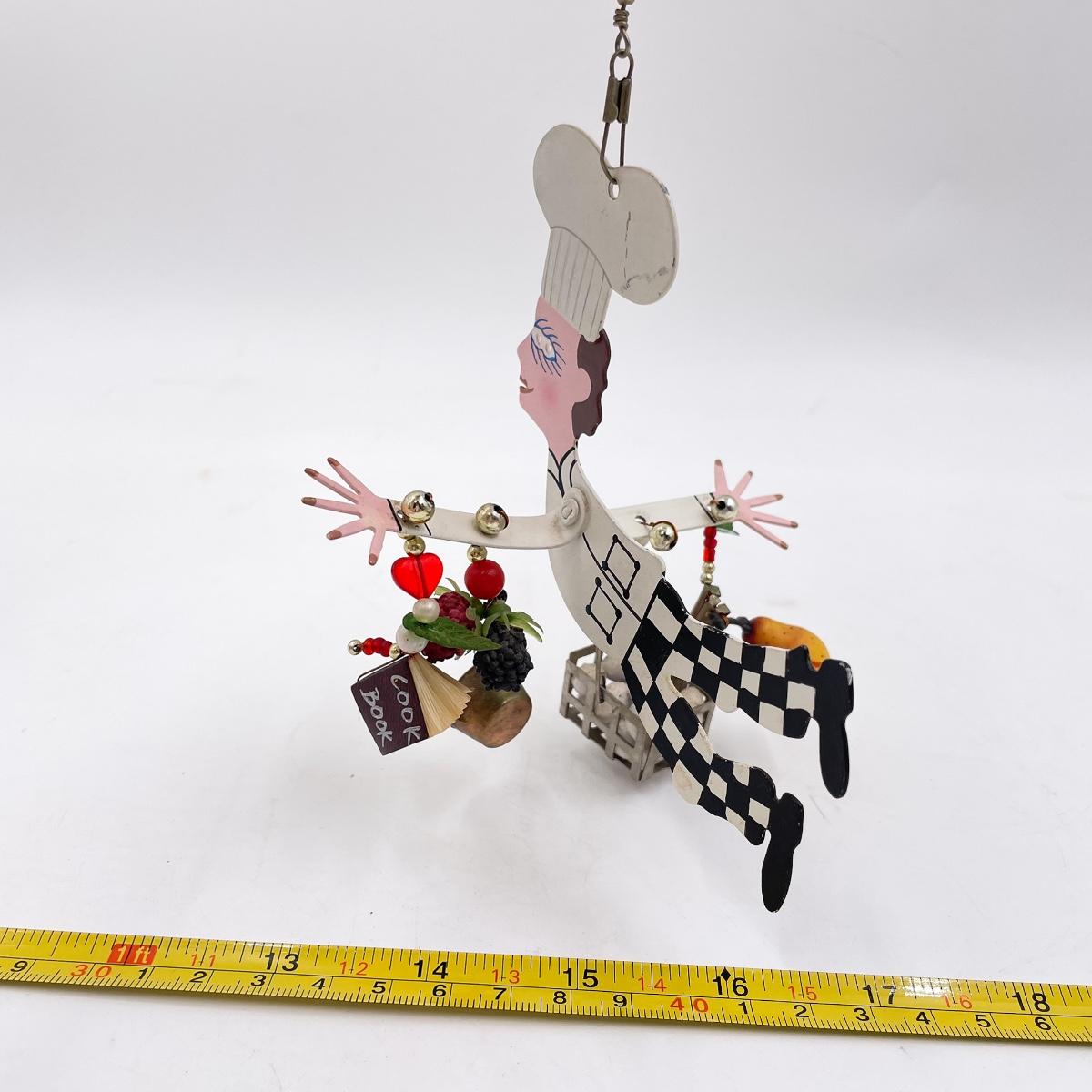 *SIGNED* KAREN ROSSI HANDMADE “CHEF FANCIFUL FLIGHT (MALE)” METAL ORNAMENT W/ CHARMS