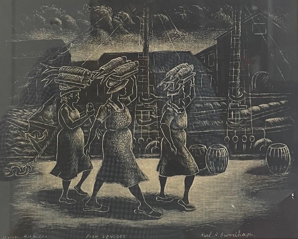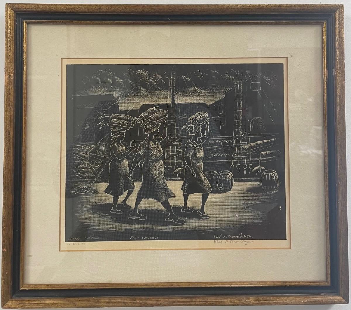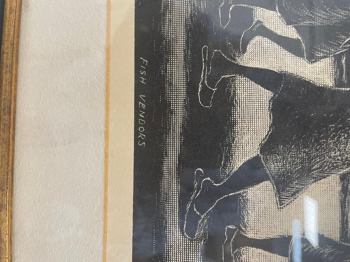 SIGNED in pencil Karl Broodhagen (1909 – 2002) lithograph sketch. Title: Fish vendors. Measurement approximate: Material: Paper