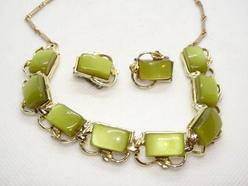 Signed LIME Green Necklace & Earring Set - Thermoplastic - Reserve