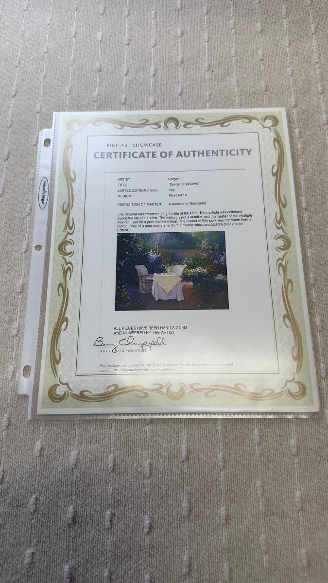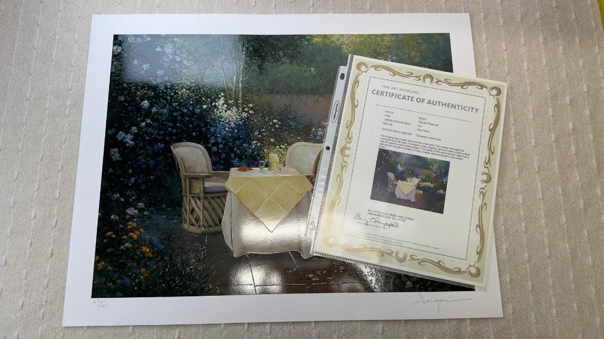 1. Signed Limited Edition Art Print ;Garden Pleasures; by Jergen ; Hand-Signed with Certificate of Authenticity
