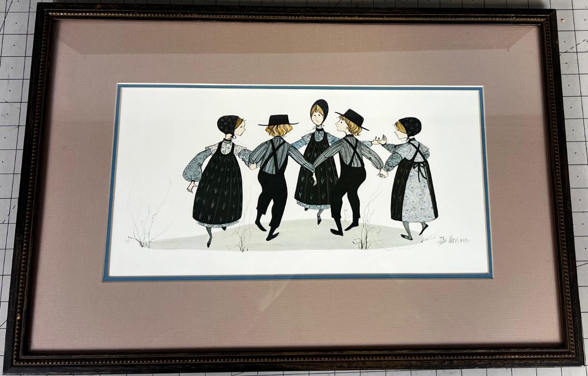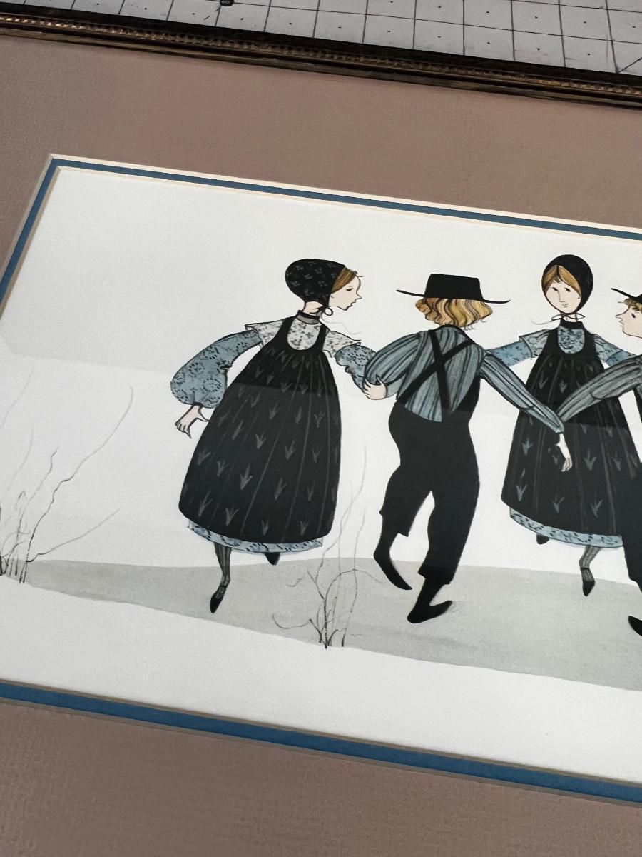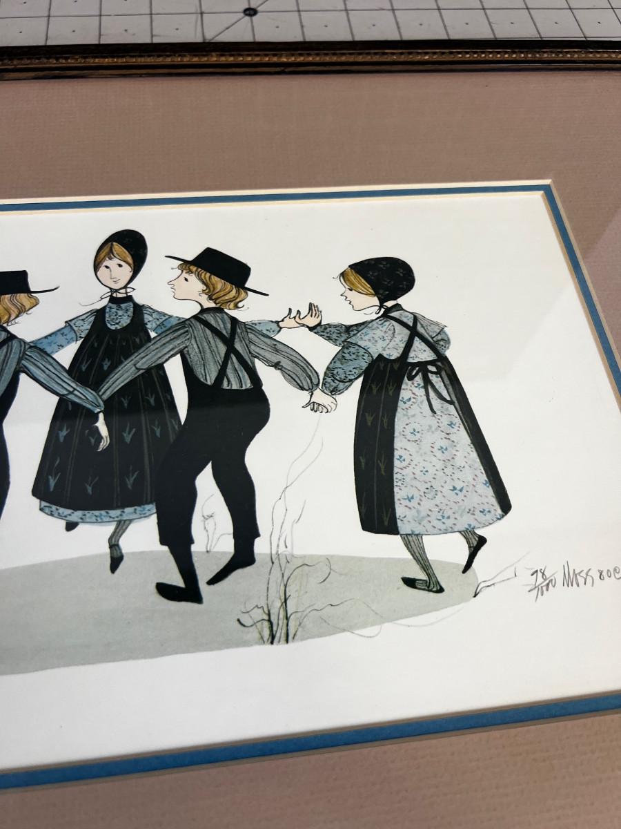 Signed Lithograph Framed and Matted 78/1000 Dancing Amish