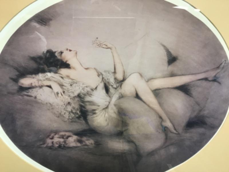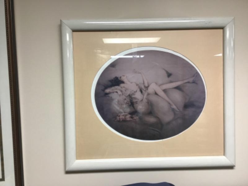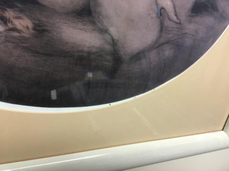 Framed. Signed by artist - has slid down in frame but verified by owner. Frame measures approximately 25” x 30 inches. Print etching
