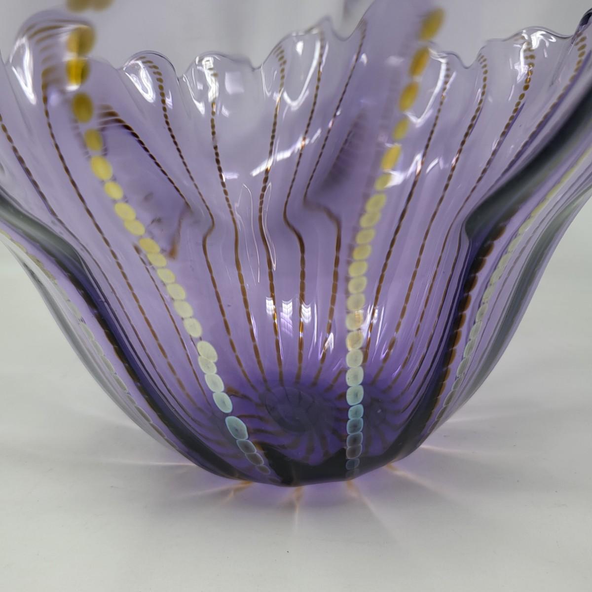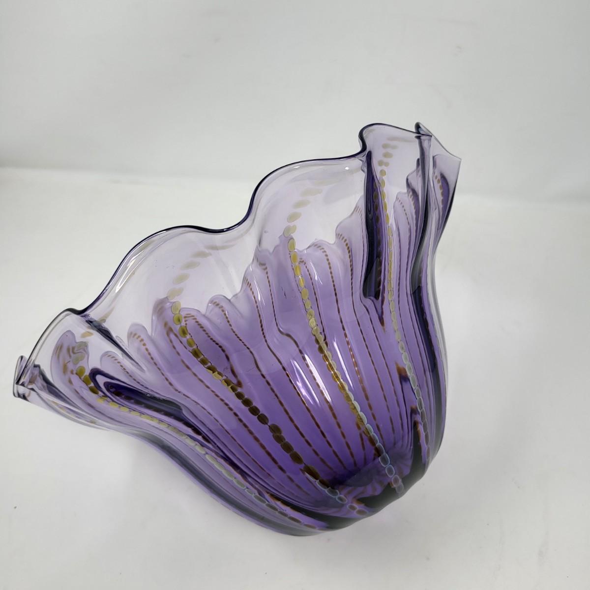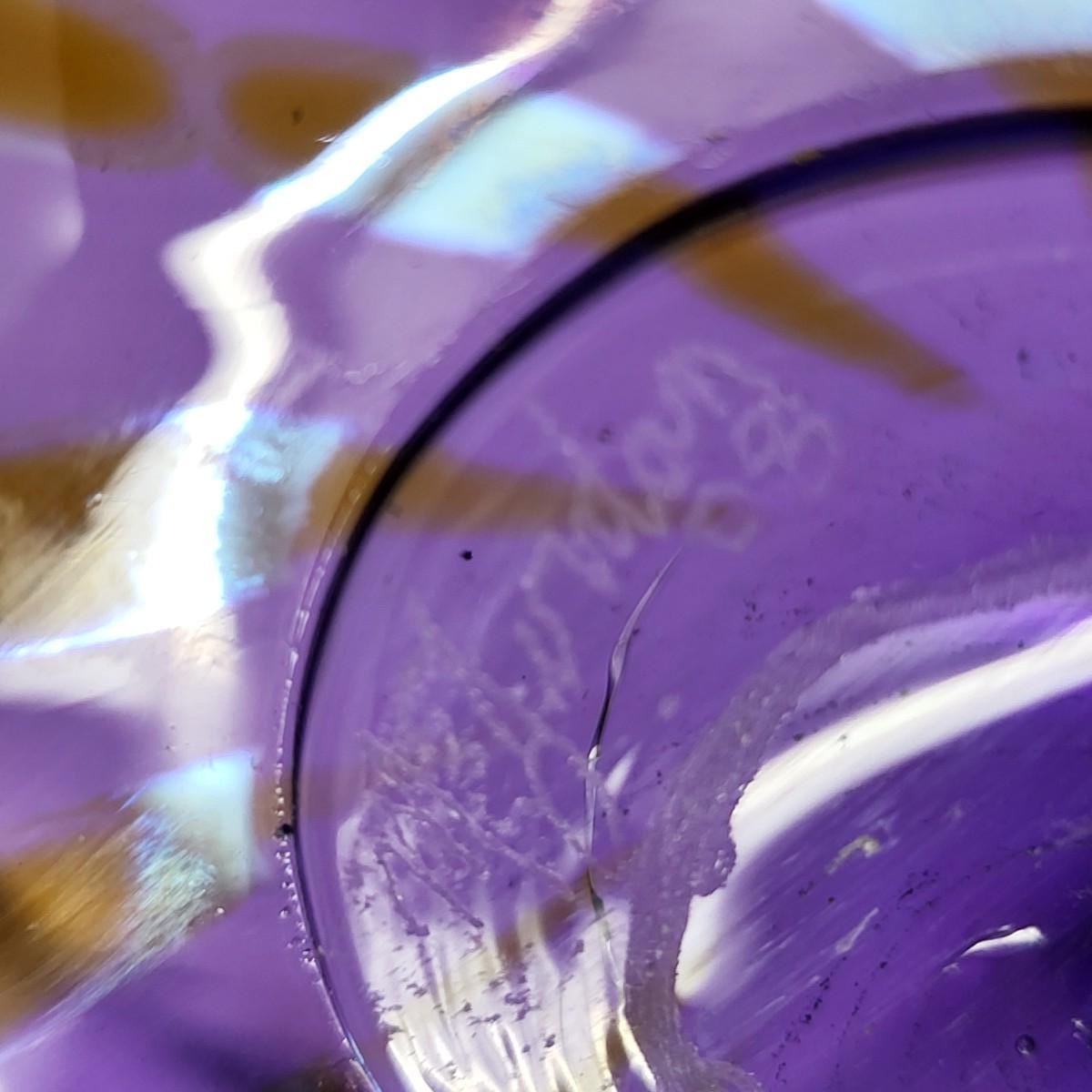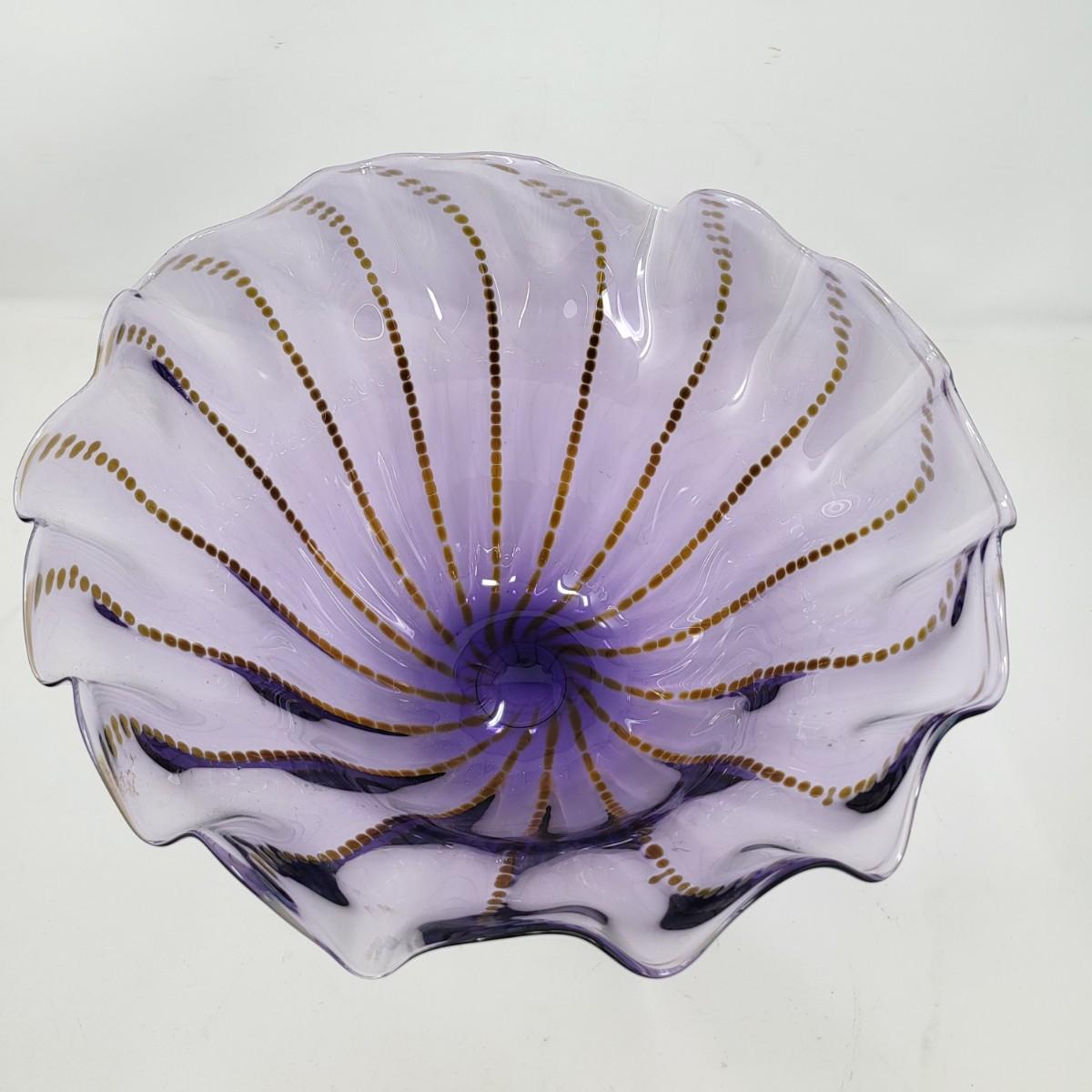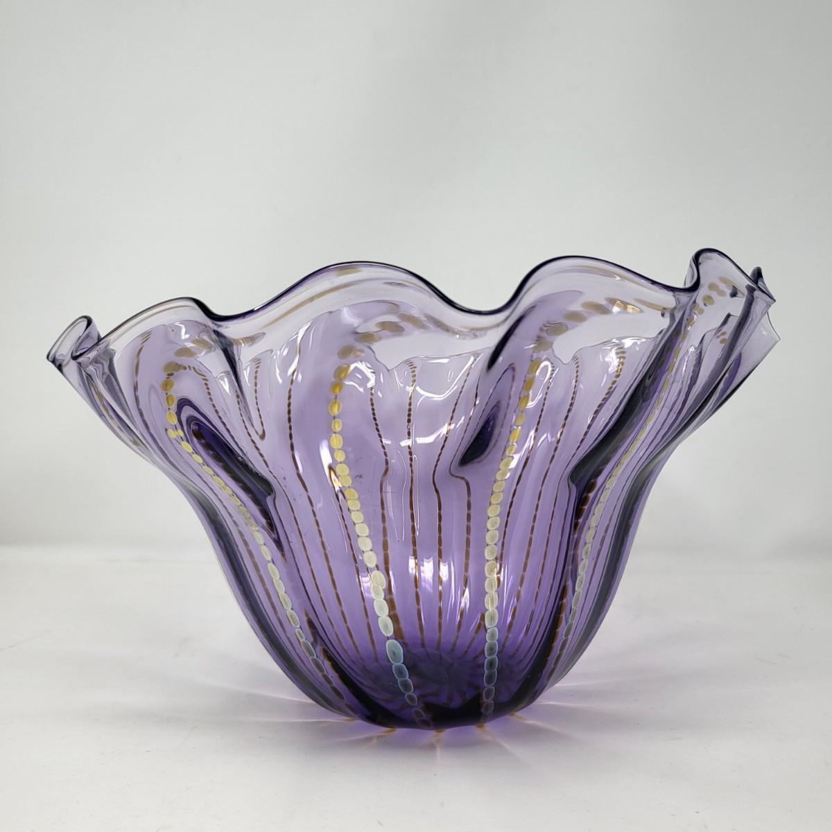 Signed M. Jordan 2008 Purple Ruffle Glass Bowl