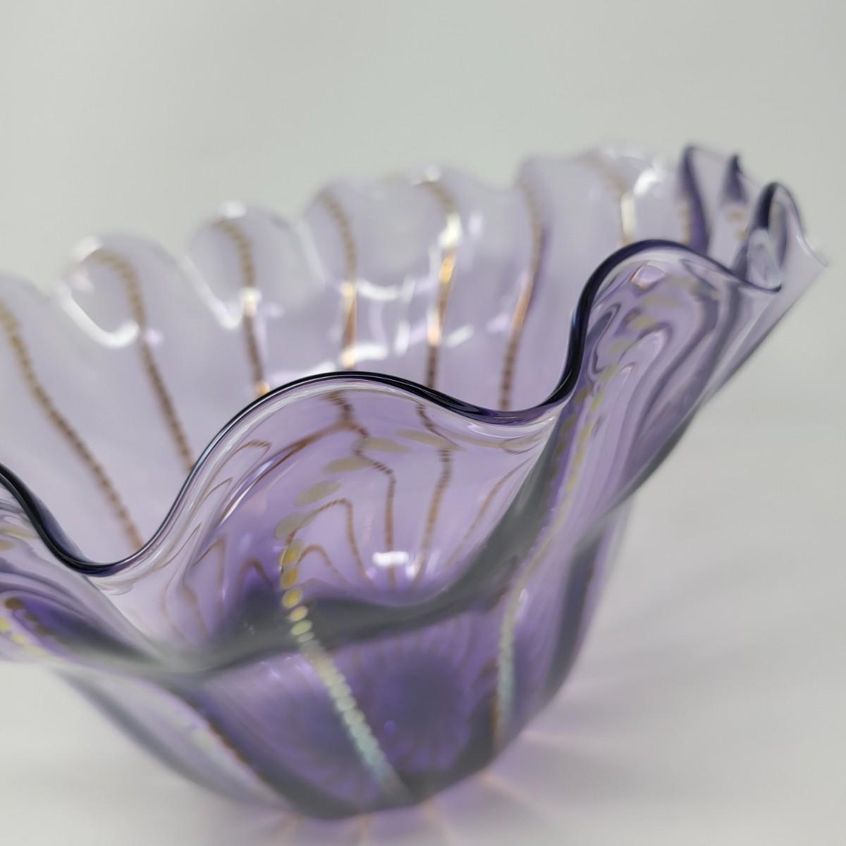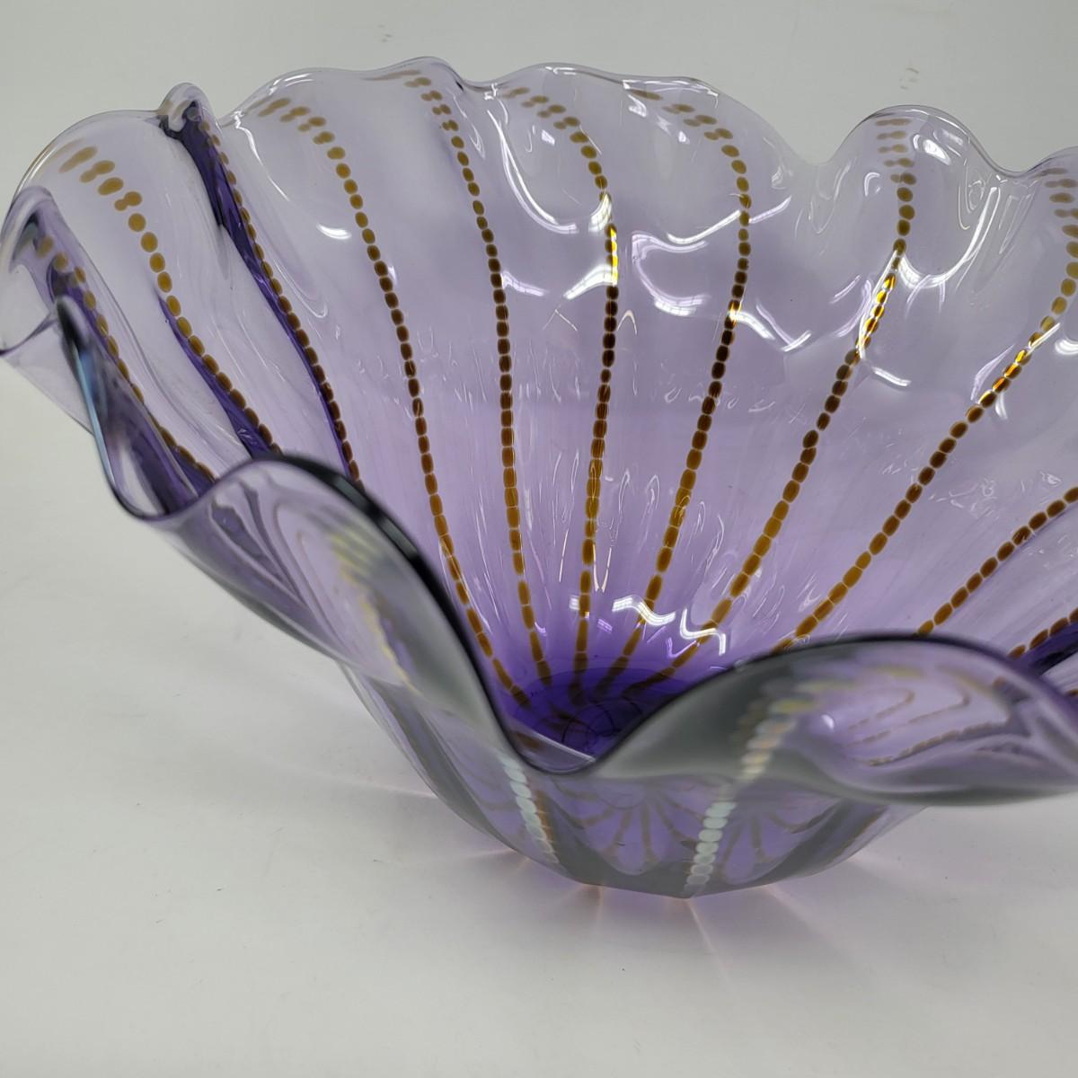 Signed M. Jordan 2008 Purple Ruffle Glass Bowl