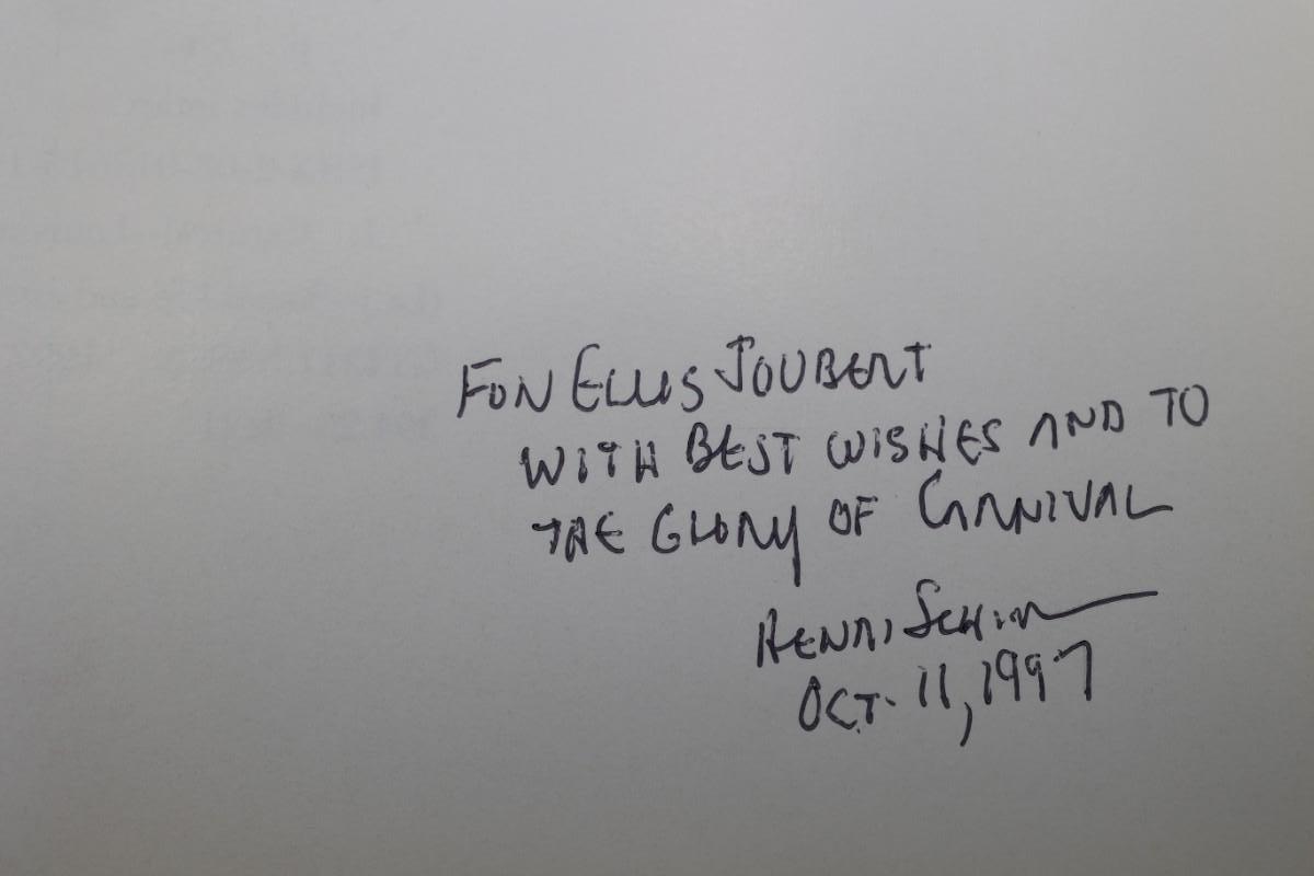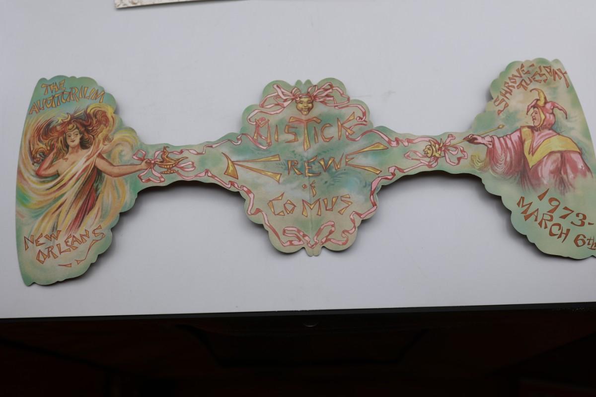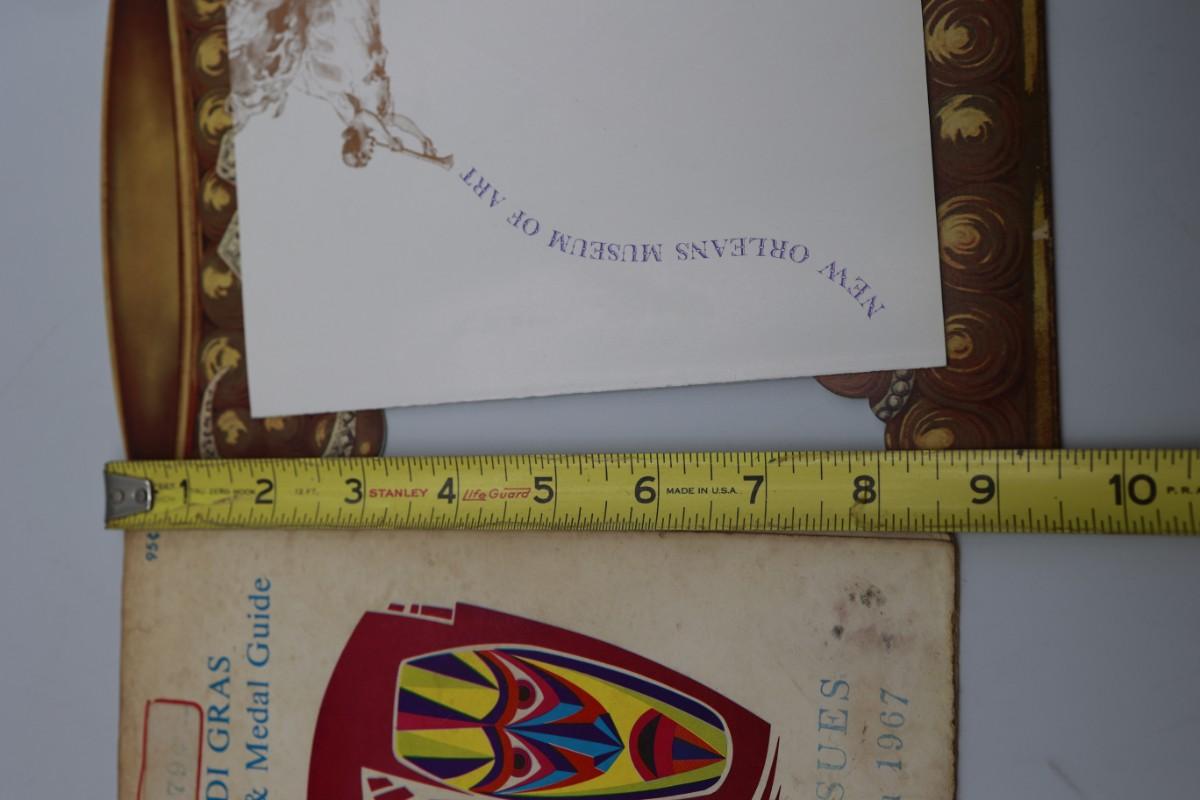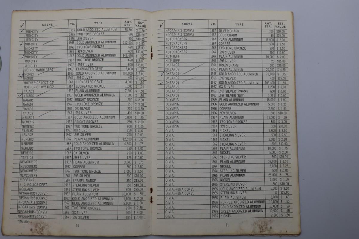 Signed Mardi Gras book by Henri Schindler, the invitation to meet Henri Schindler, and doubloon and medal guidebook.