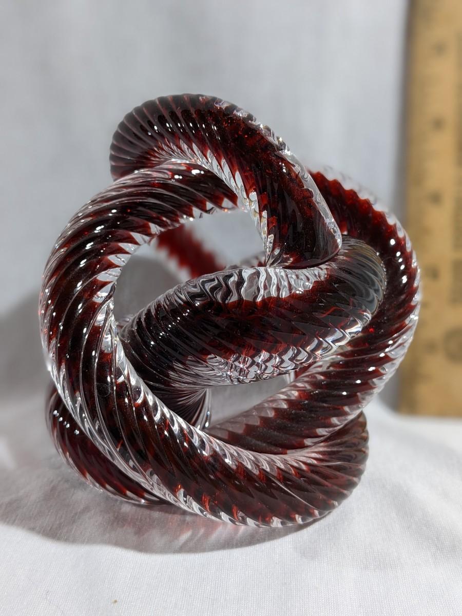 Mid Century Fusion Z Art Glass Knot Sculpture Twisted Rope Signed Paperweight, no imperfections