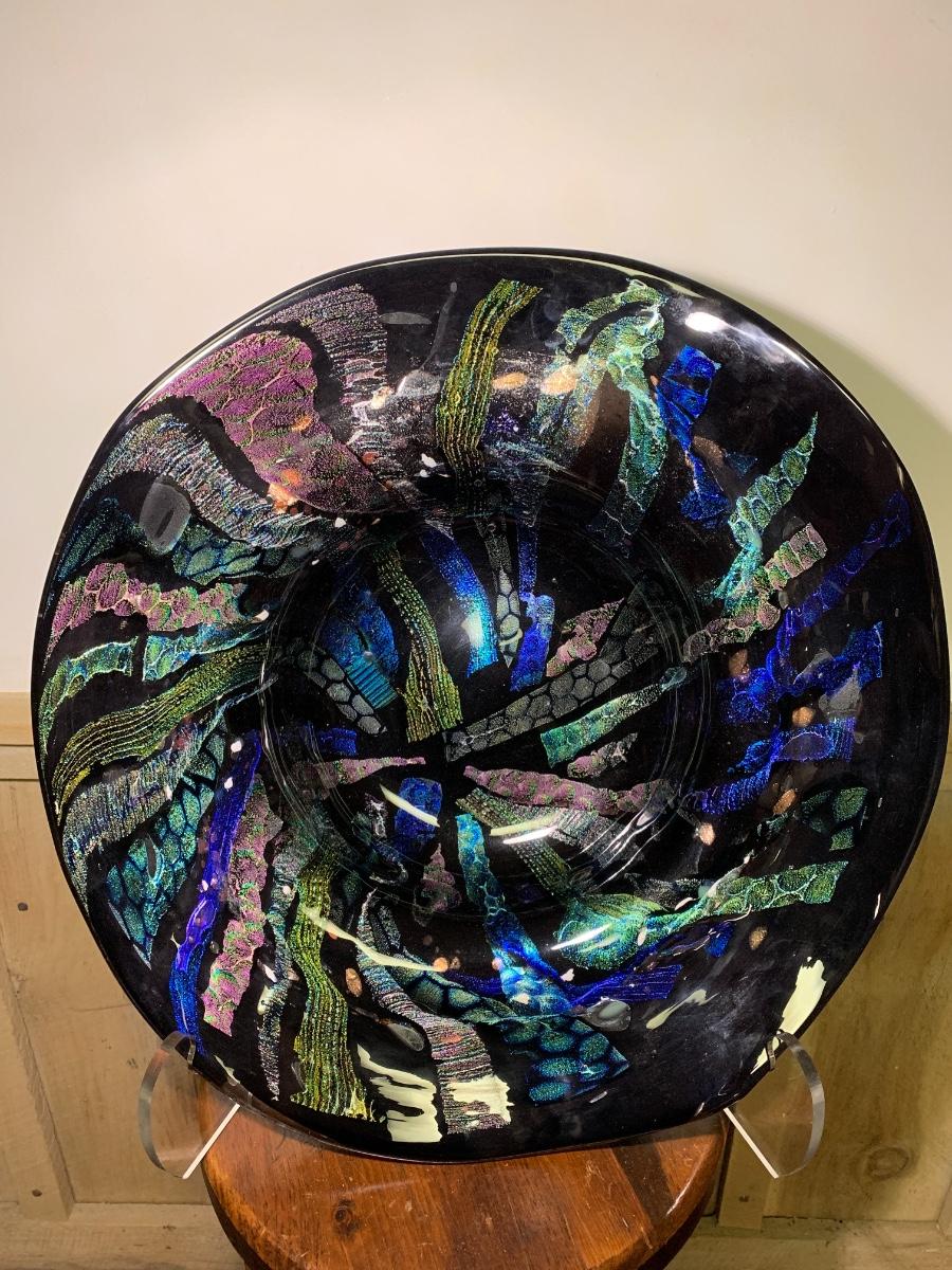 Signed Midcentury Large ArtGlass Bowl w/ stand