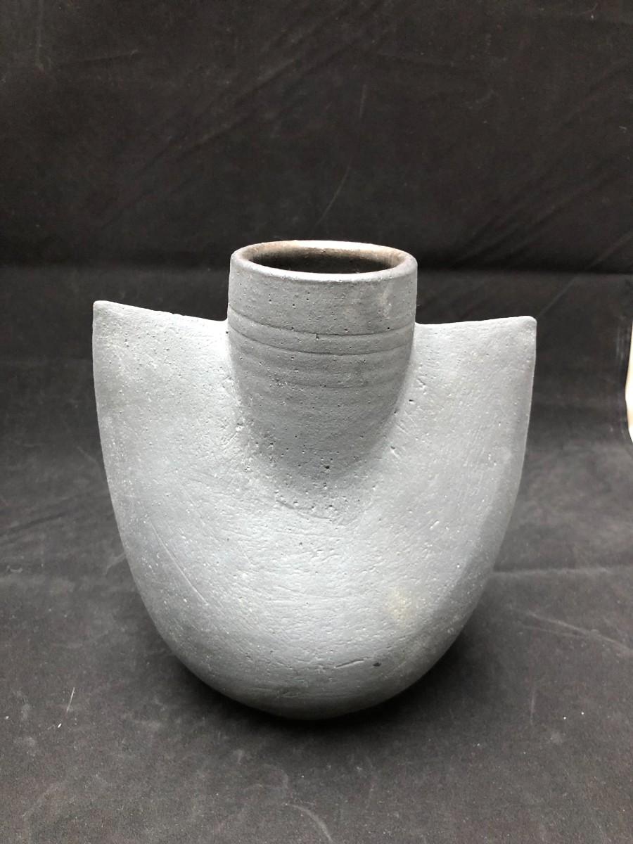 Modernist light grey matte glazed vessel vase. Signed by the artist. Very good condition.