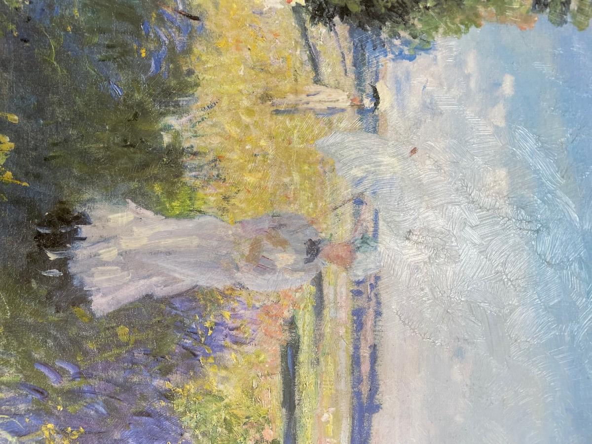 Description: Signed Monet replica Oil painting on board; Material: Oil on board; Measurement approximate: 23x25 in. (framed), 21x23 in. (canvas)