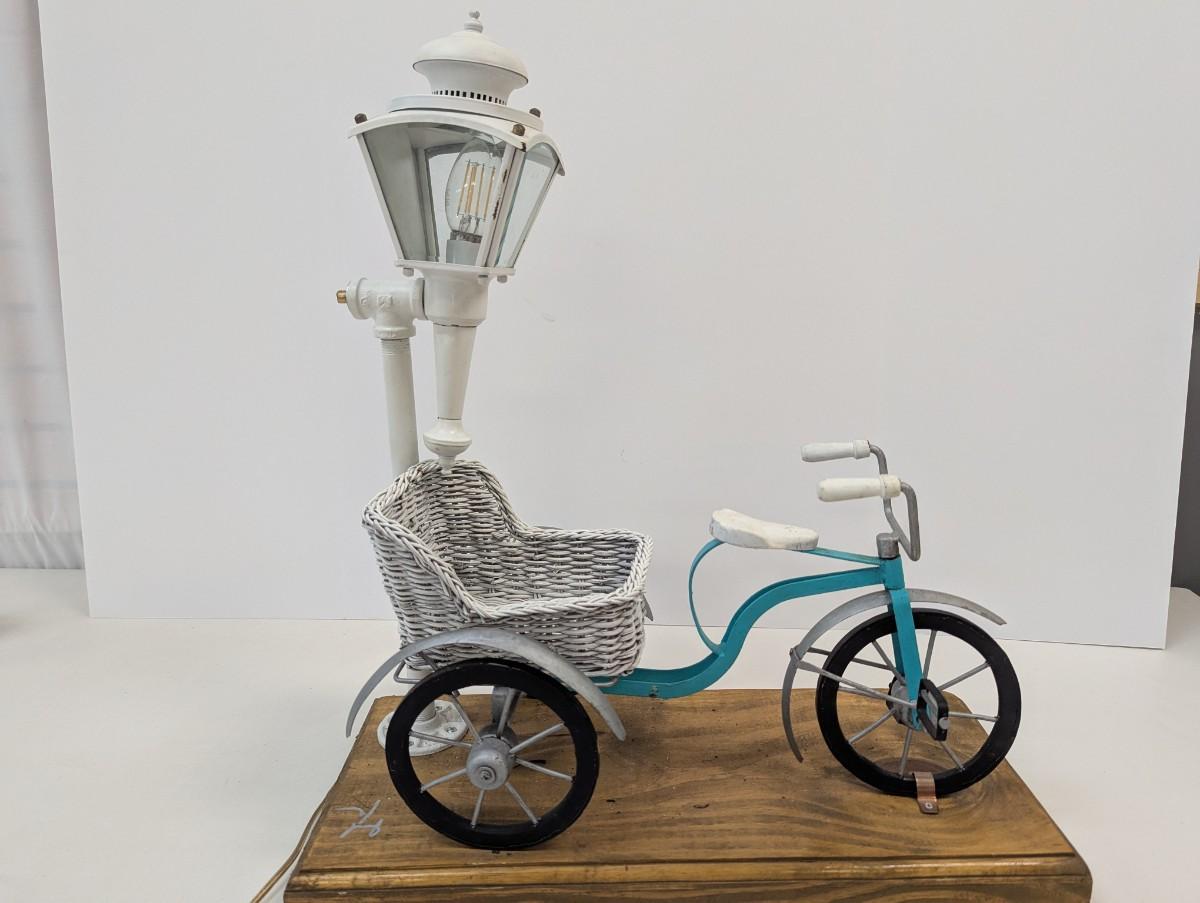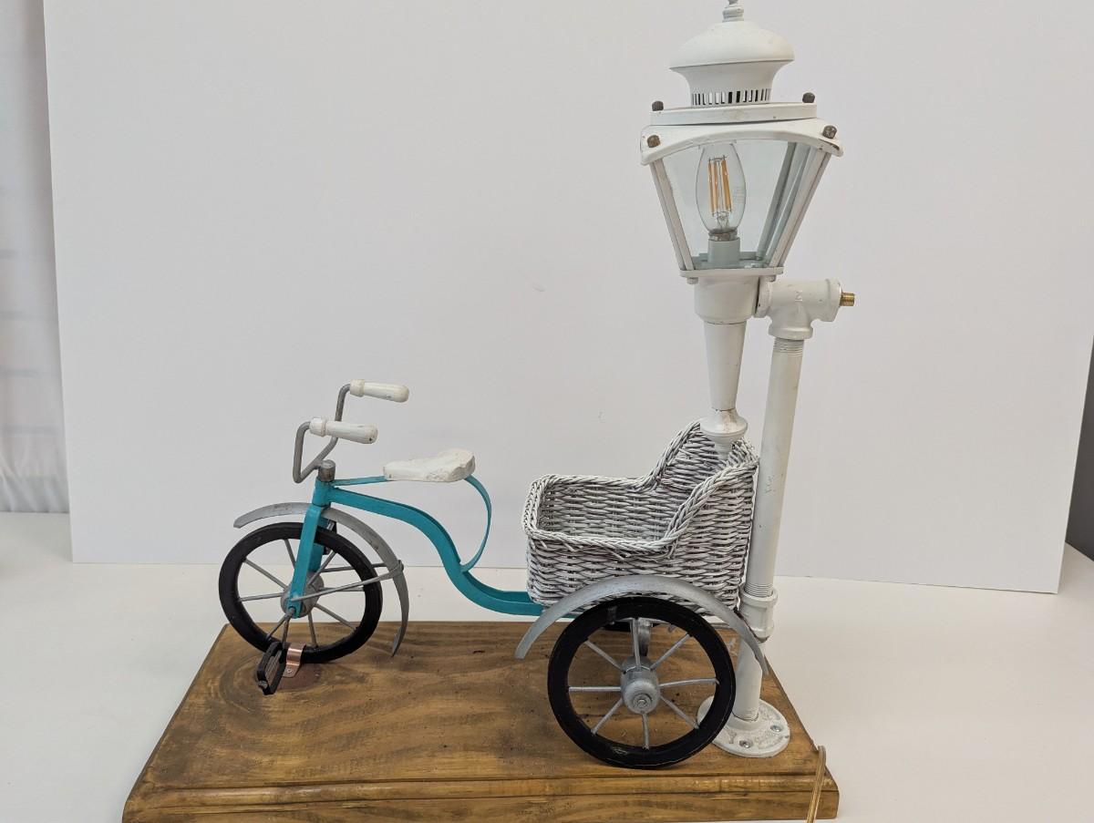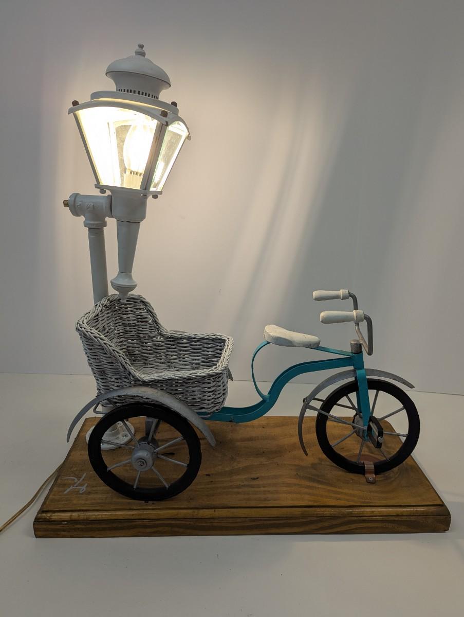Signed Multi-Colored Rickshaw Carriage Tricycle Table Lamp Worked!