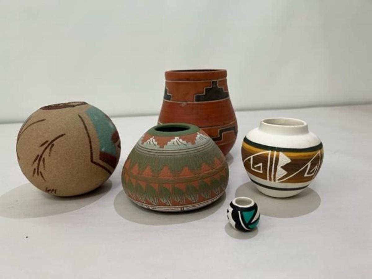 Signed Native American Pottery includes Acoma and Navajo Design Pieces