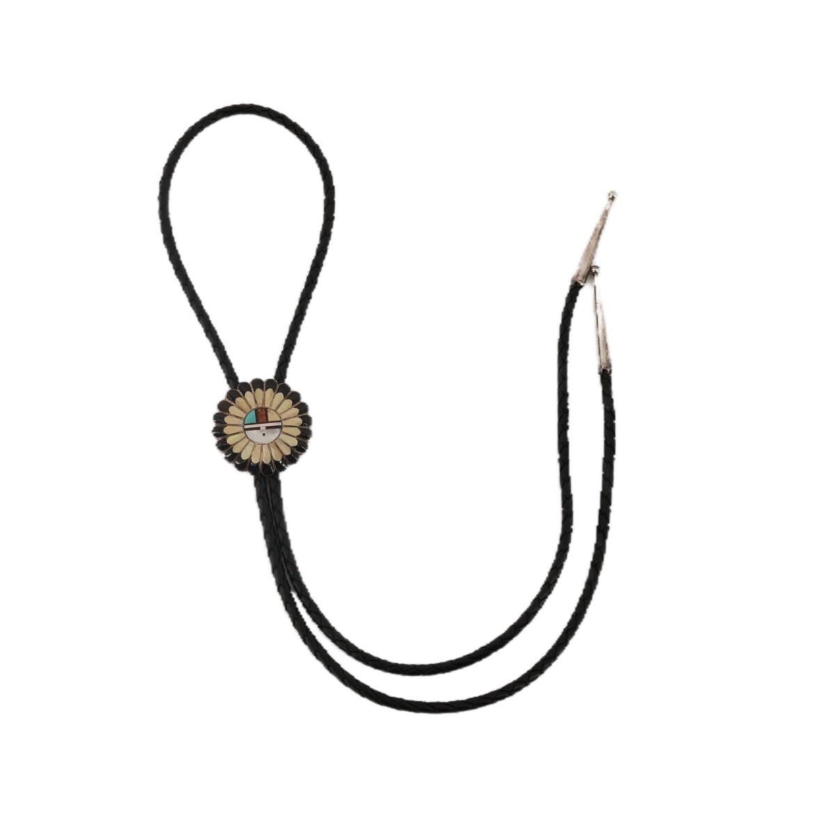 SIGNED Native American Zuni Sun Face Bolo Tie