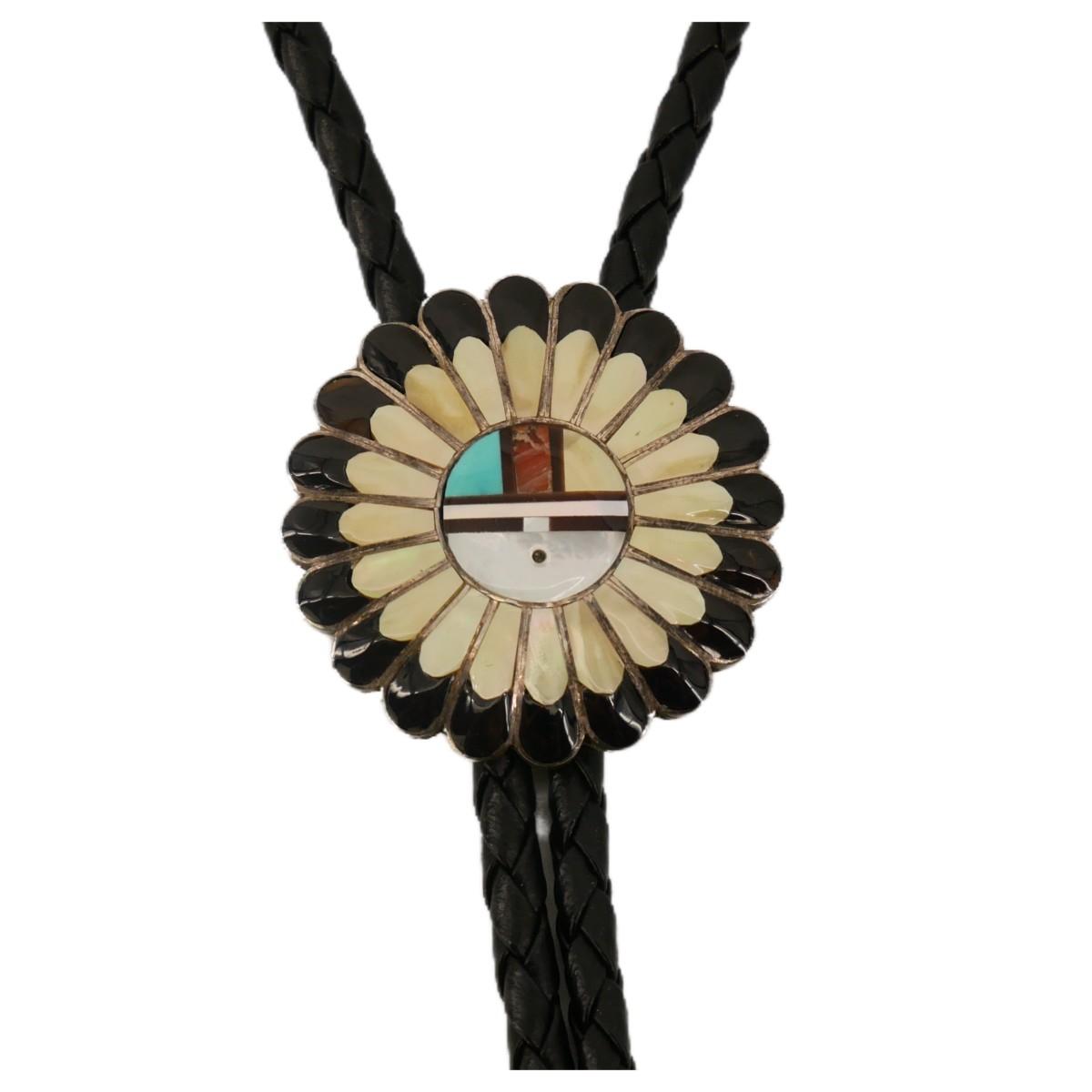 SIGNED Native American Zuni Sun Face Bolo Tie