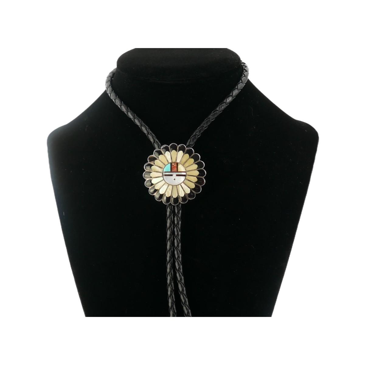 SIGNED Native American Zuni Sun Face Bolo Tie