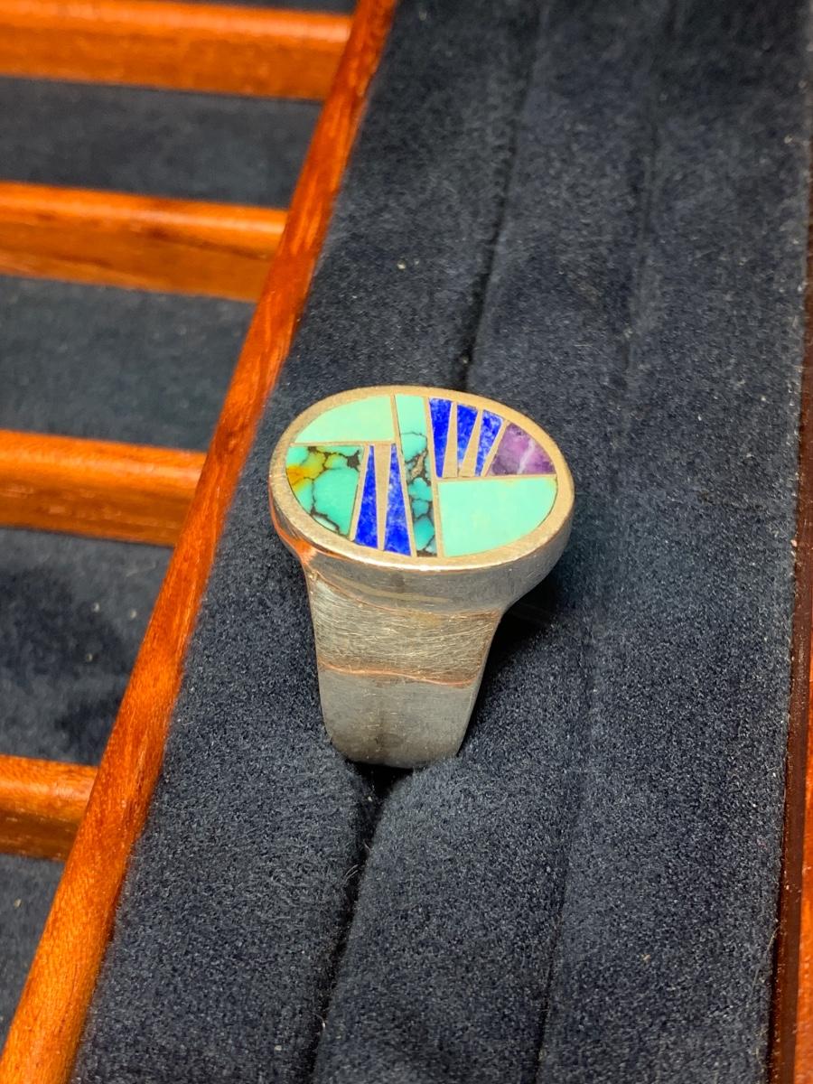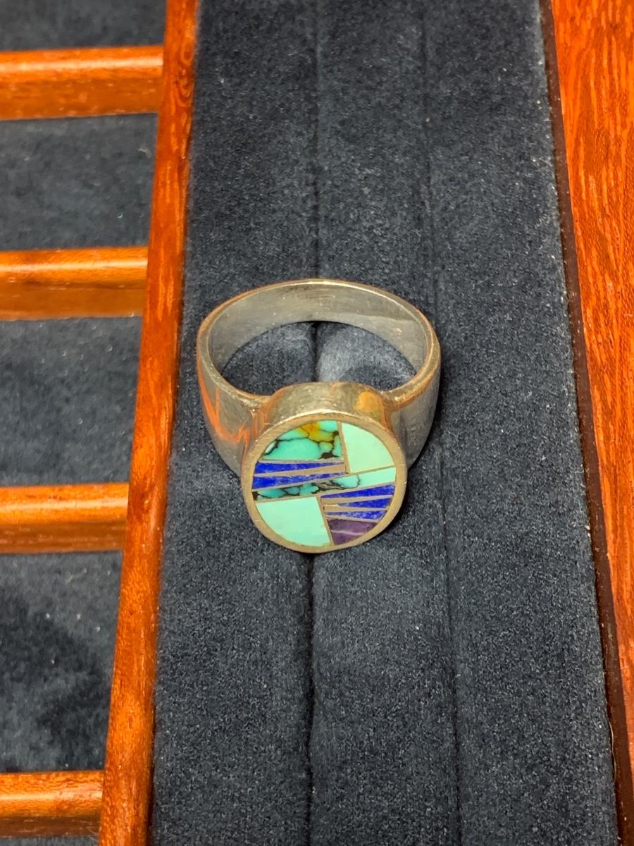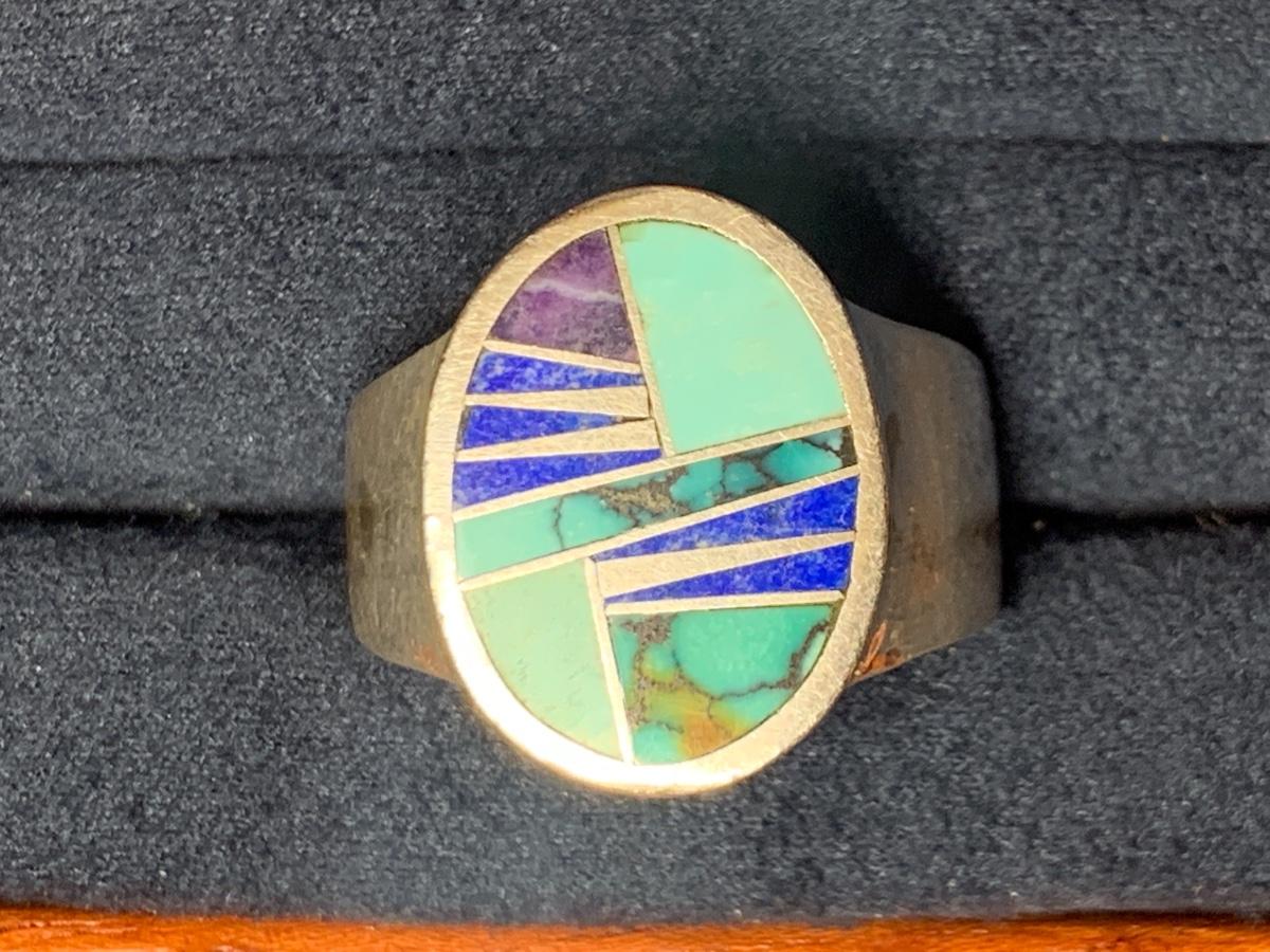Signed Navajo Inlay Men’s Ring- Calvin Begay
