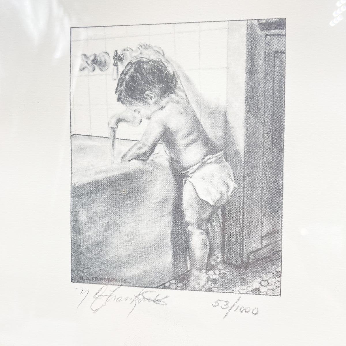 *SIGNED* NICHOLAS D. FRANKOVITZ 53/1000 FRAMED PRINT - BABY BOY AT BATHTUB