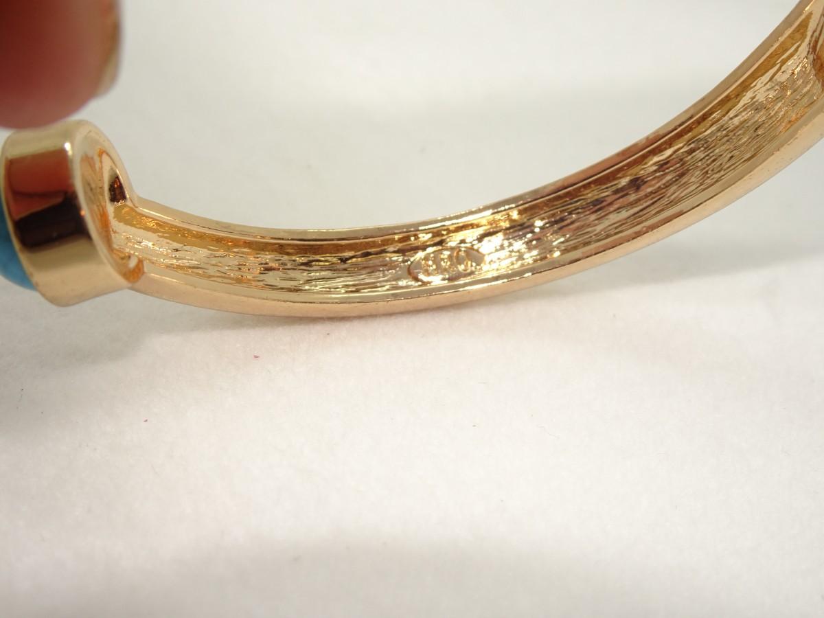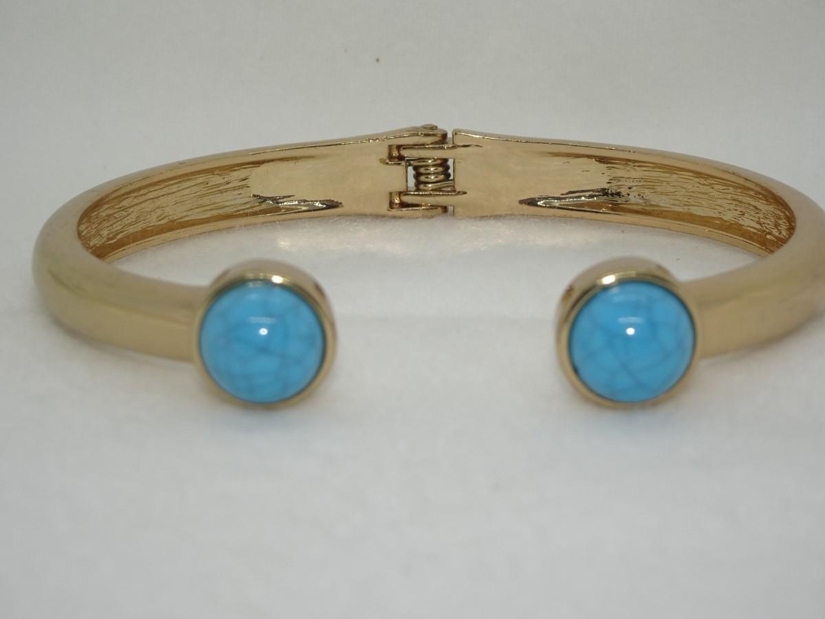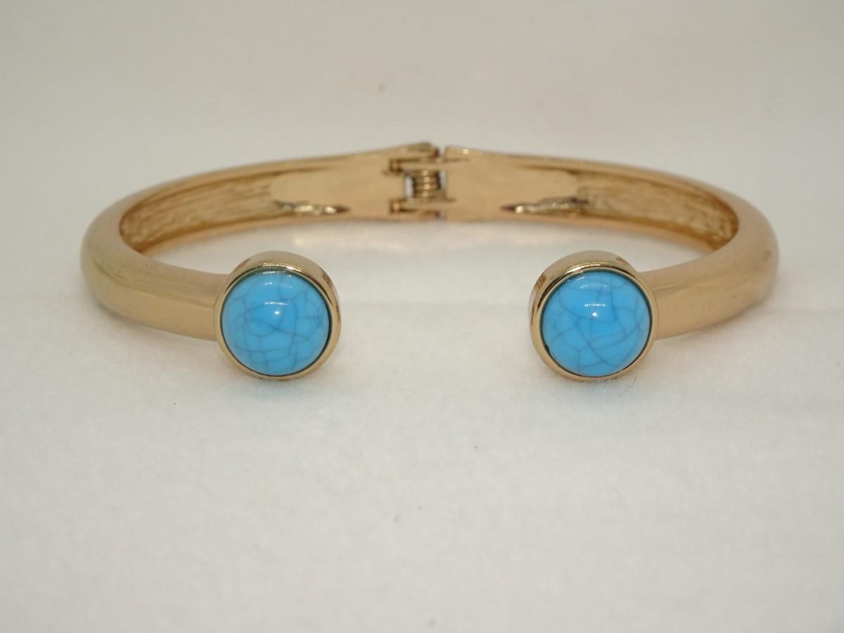 Signed NRO Gold Tone Cuff Bracelet with Turquoise colored Accents