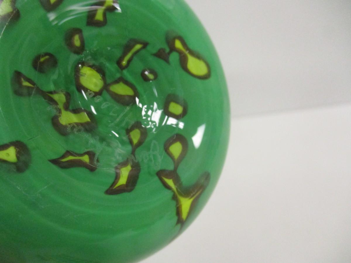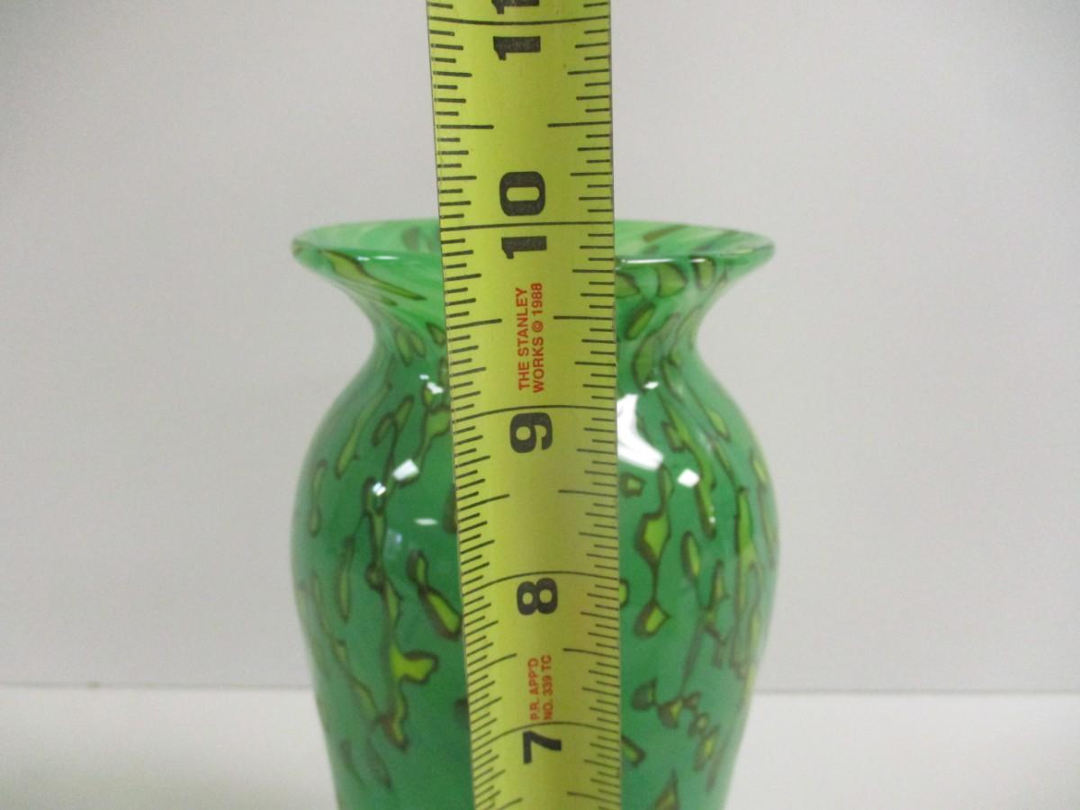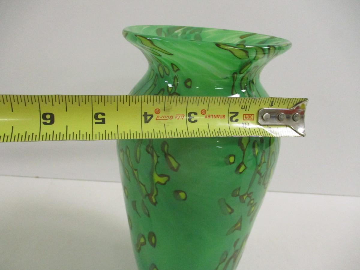 Hand Blown Signed & Numbered 4/2000 Green Glass Vase Approx 10" Tall #3