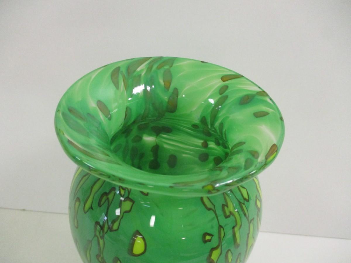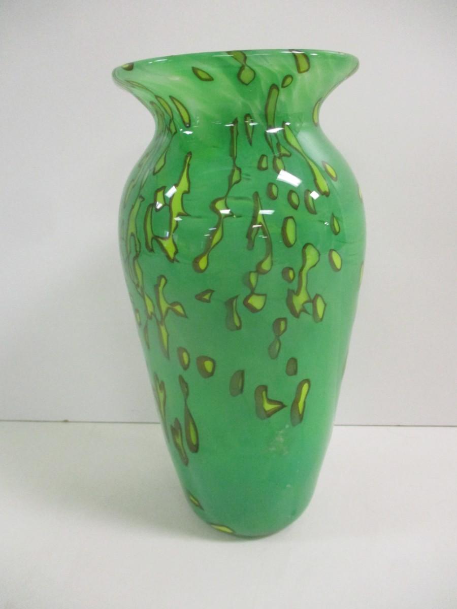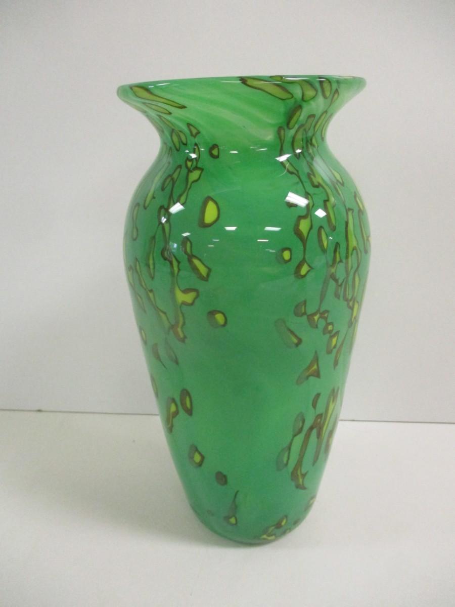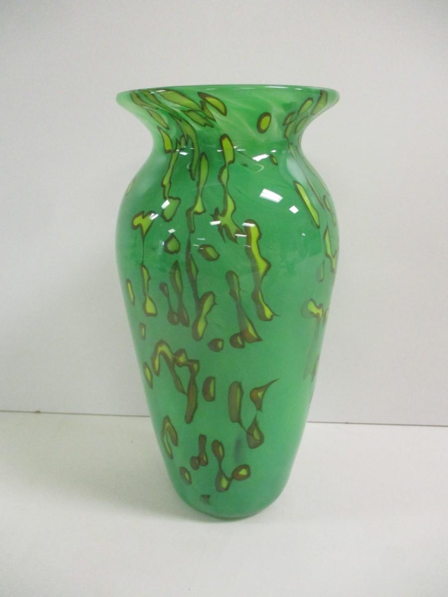Hand Blown Signed & Numbered 4/2000 Green Glass Vase Approx 10" Tall #3
