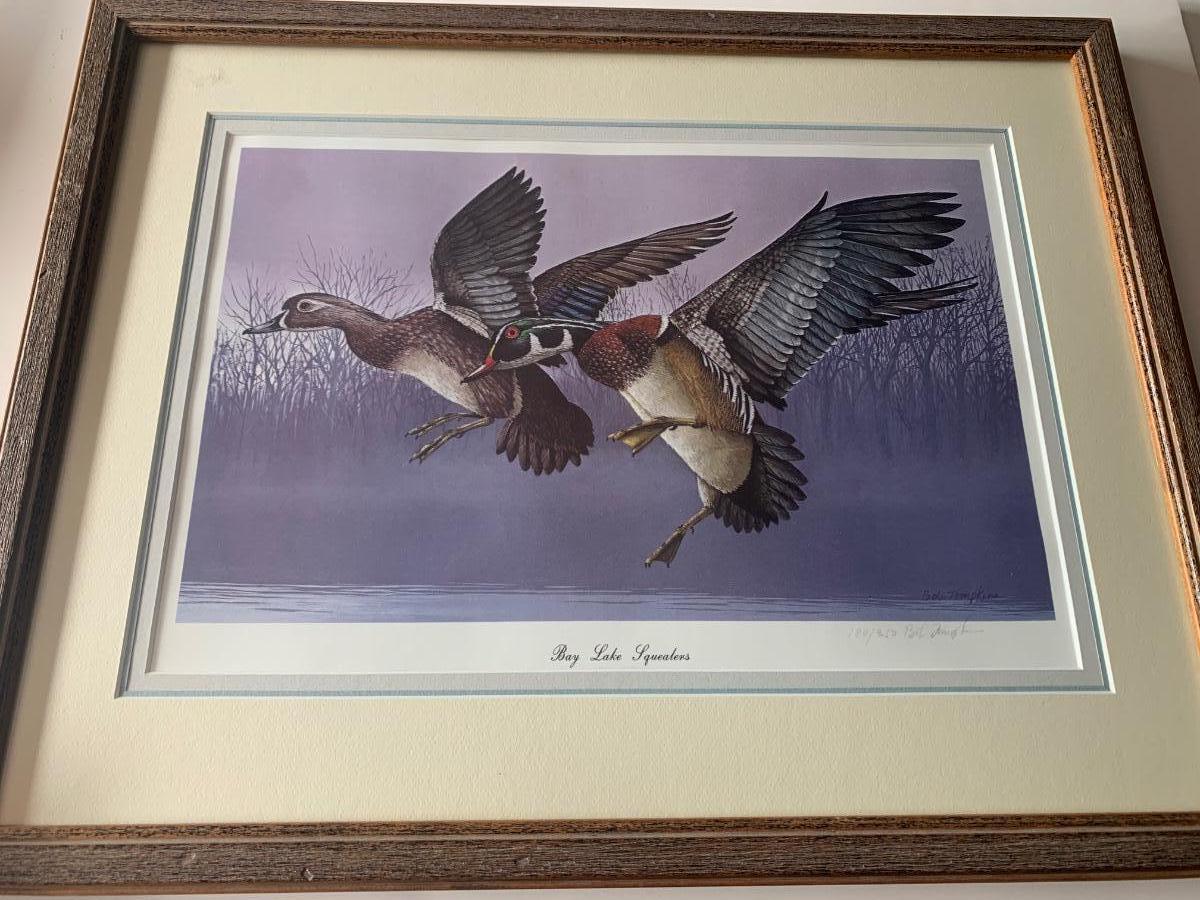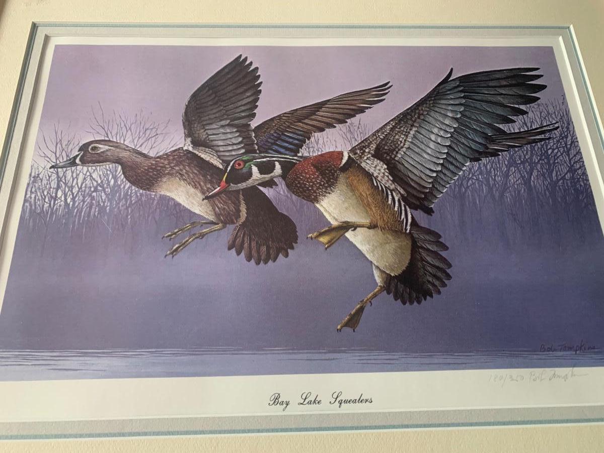 SIGNED NUMBERED FRAMED Water Mallard Ducks Fowl Print BOB THOMPKINS