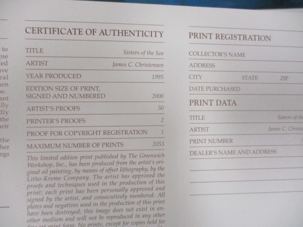 Signed & Numbered James C. Christensen Litho "Sisters Of The Sea" With COA