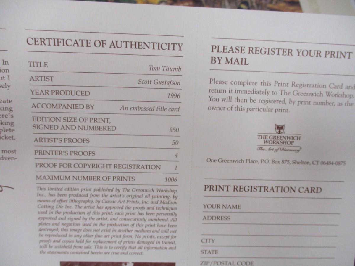 Signed & Numbered Scott Gustafson Litho "Tom Thumb" With COA