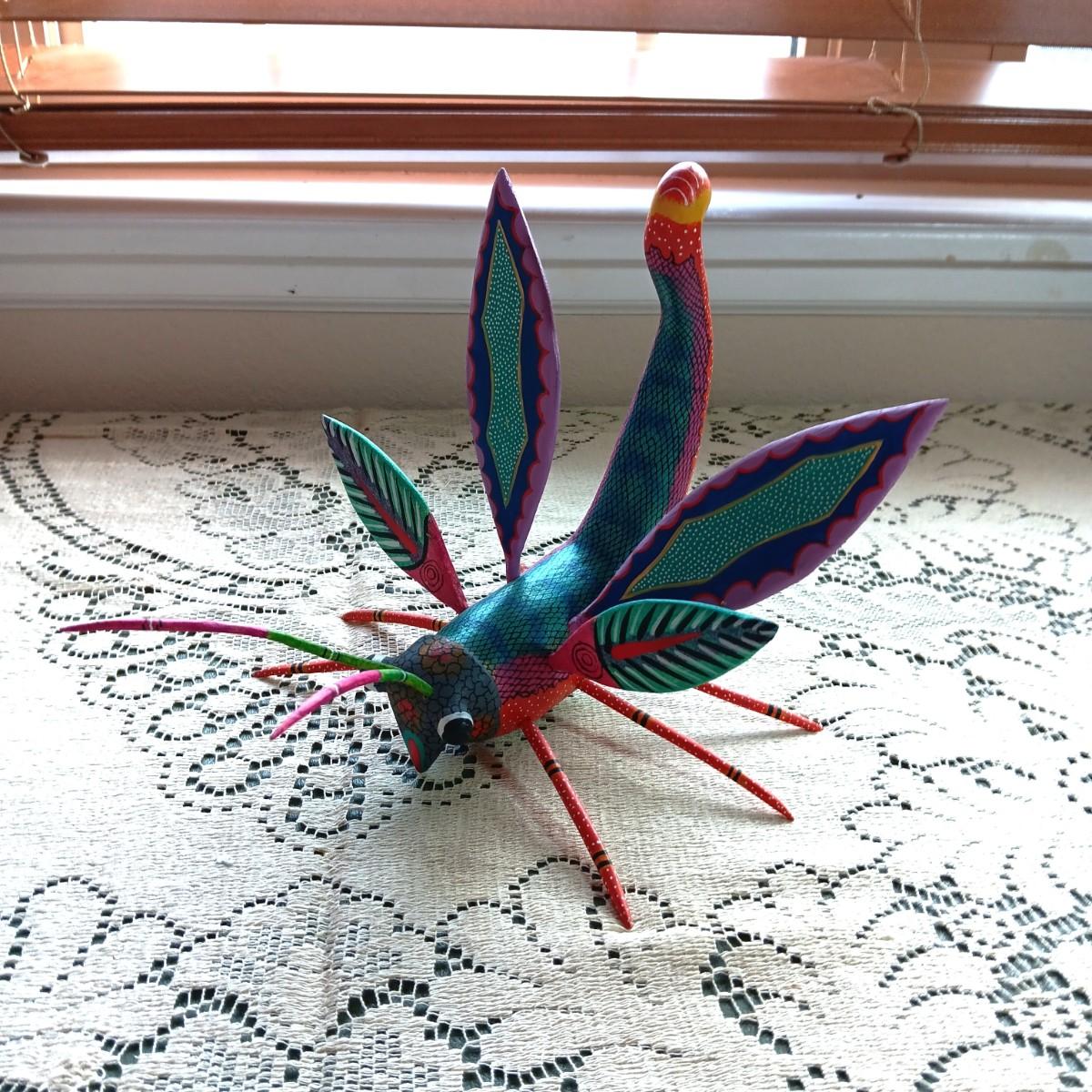 SIGNED ALEBRIJE OAXACAN DRAGONFLY HAND PAINTED AND CARVED