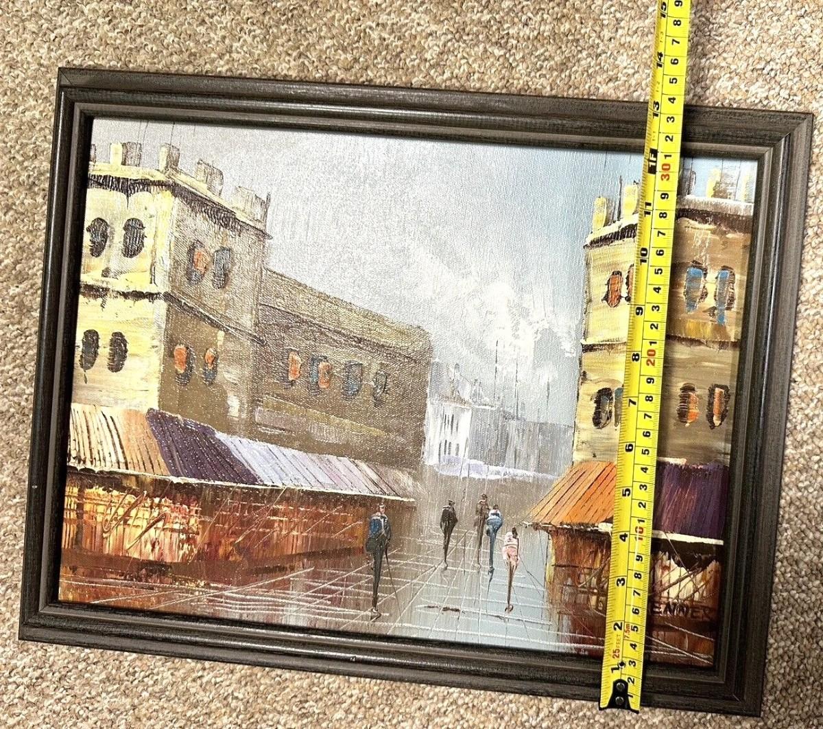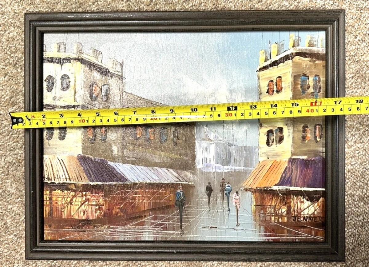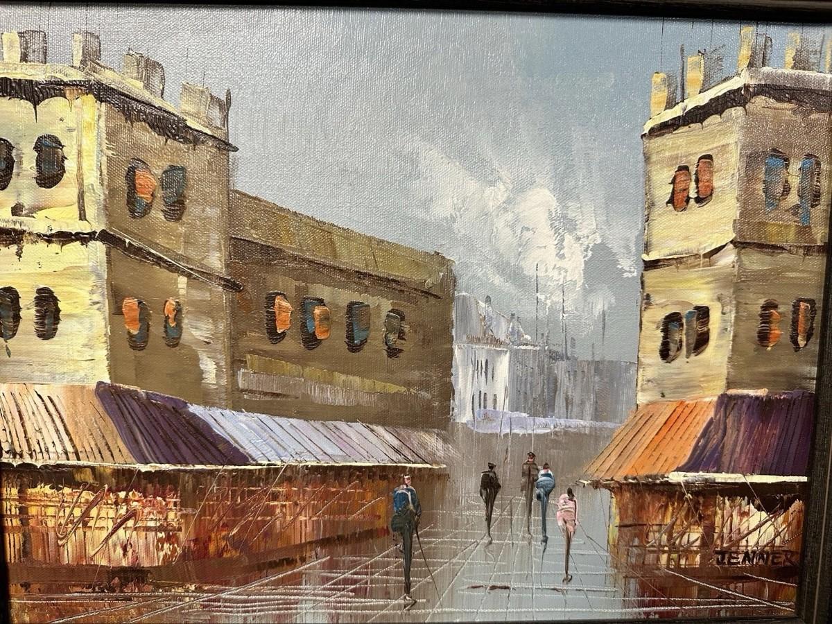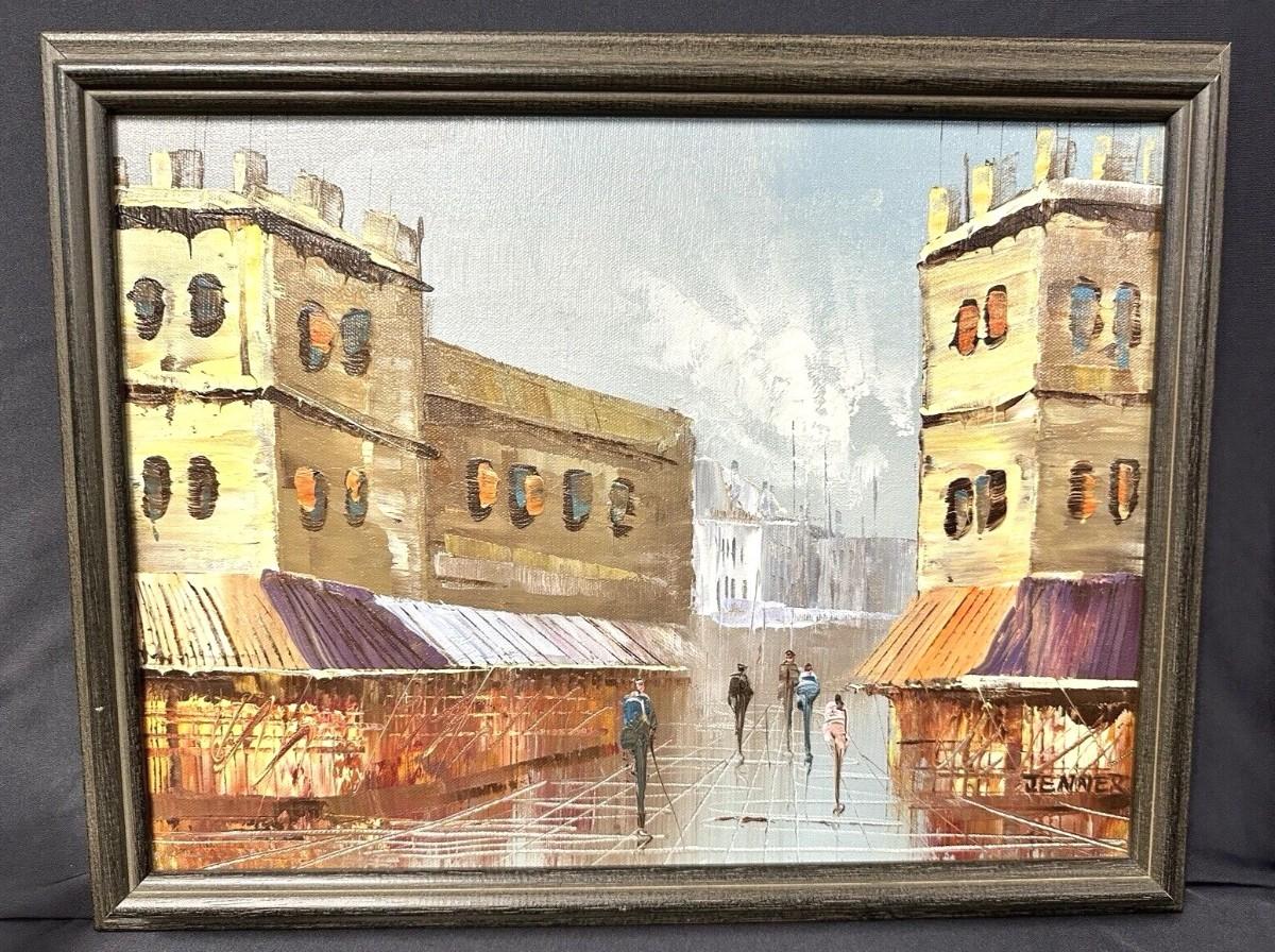 Description: Vintage Jenner Signed Original City Street Scene Framed Oil Painting