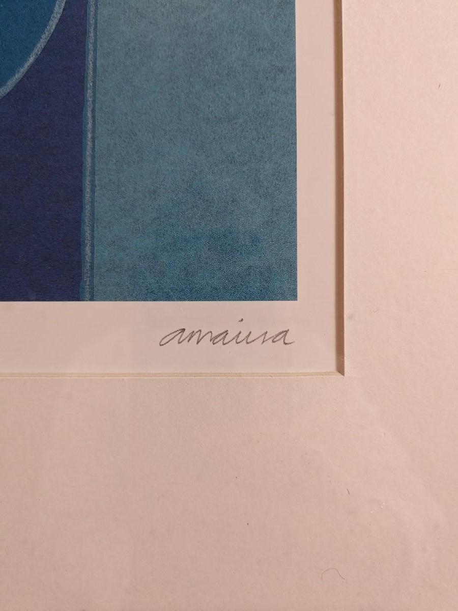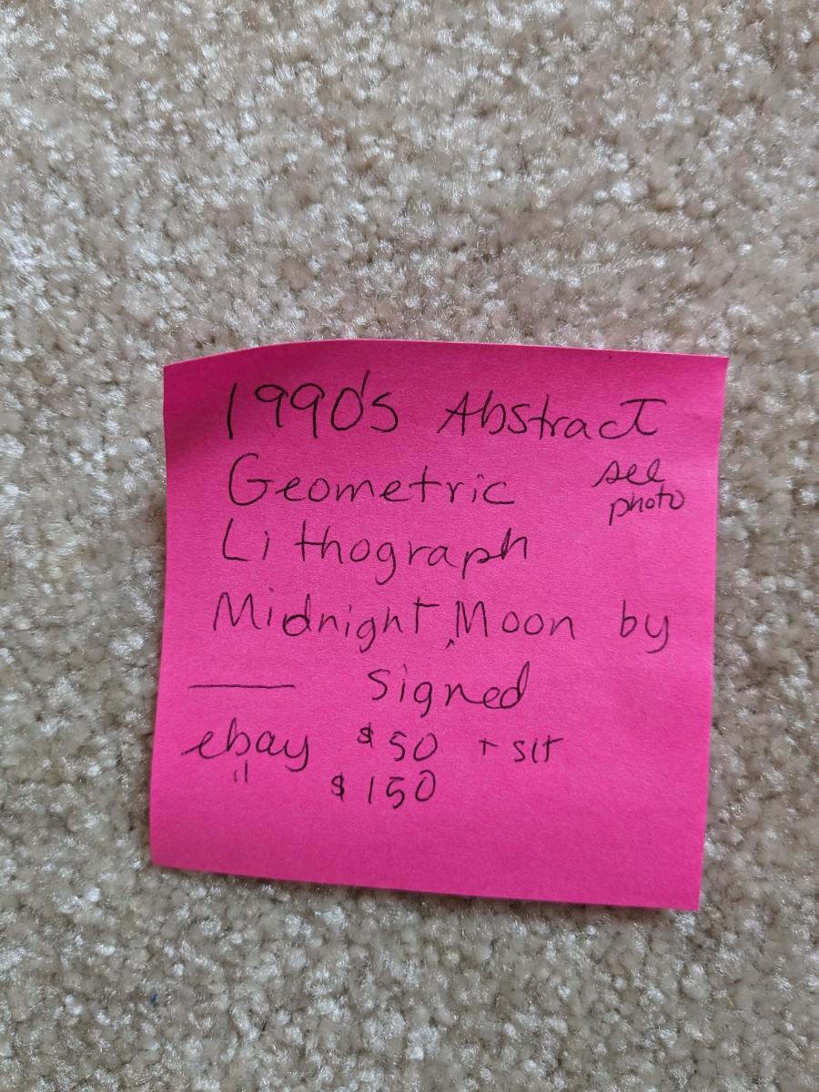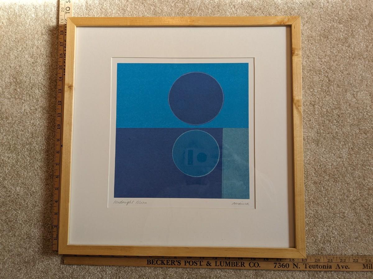 Signed Original 1990s Abstract Geometric Lithograph MIDNIGHT MOON by Amaina