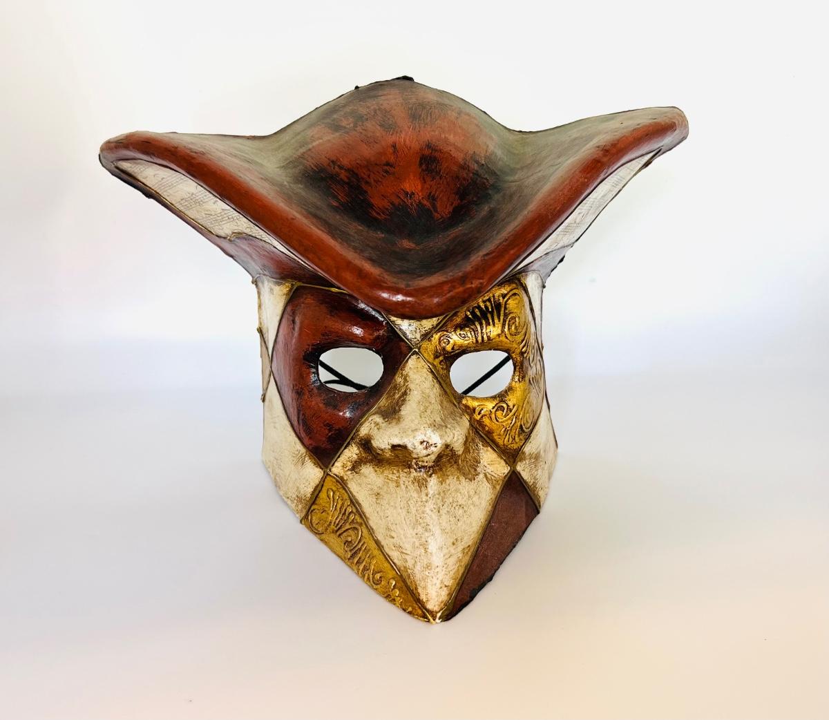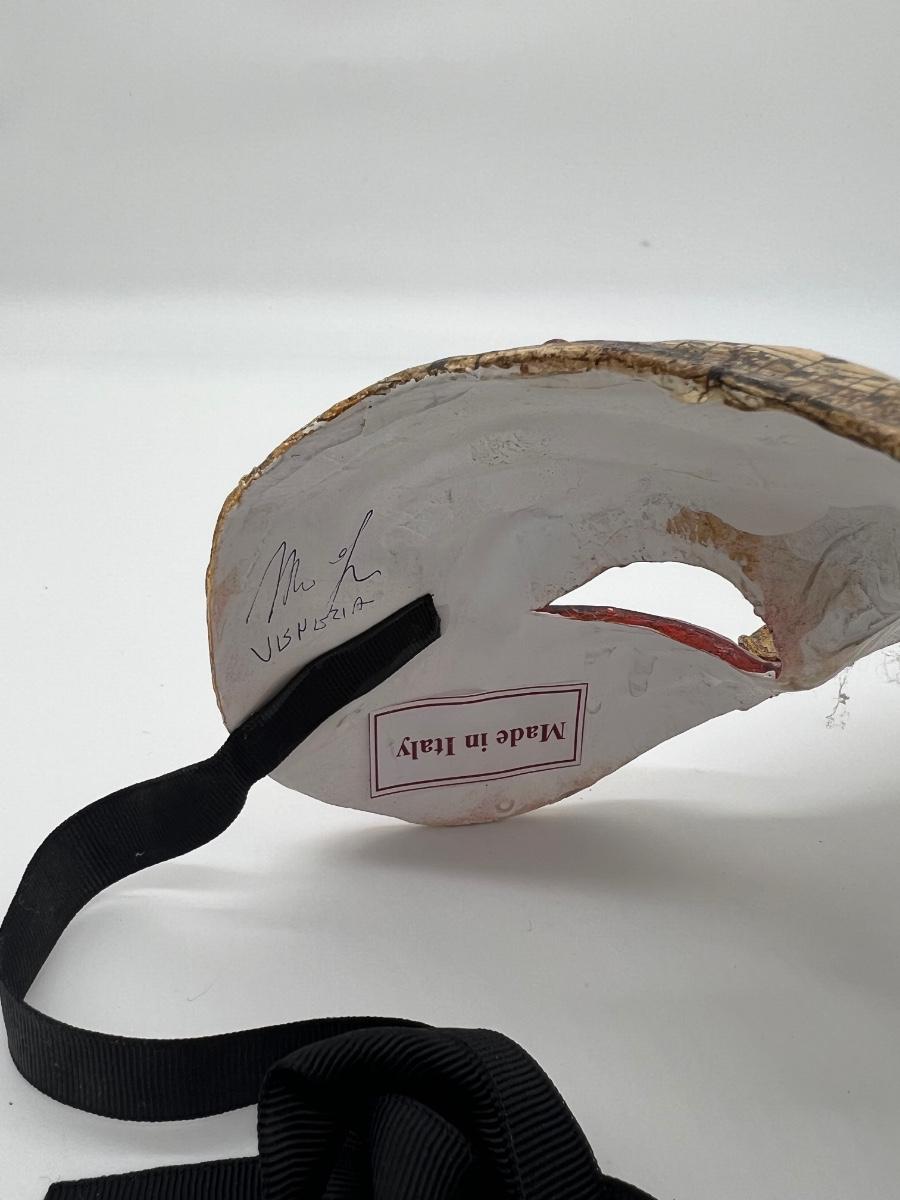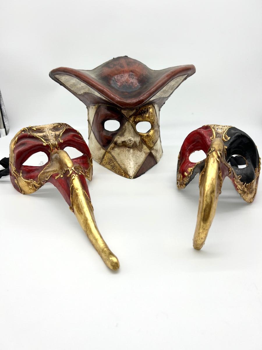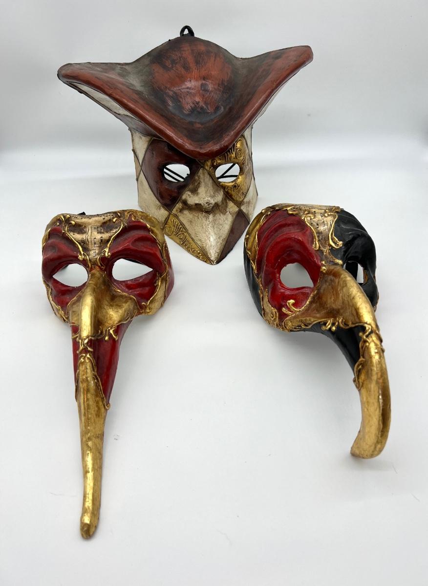 Signed and made in Italy. Full face mask measures 8 inches tall, 13 1/2 inches wide other mask, approximately 13 inches long 4 inches tall.