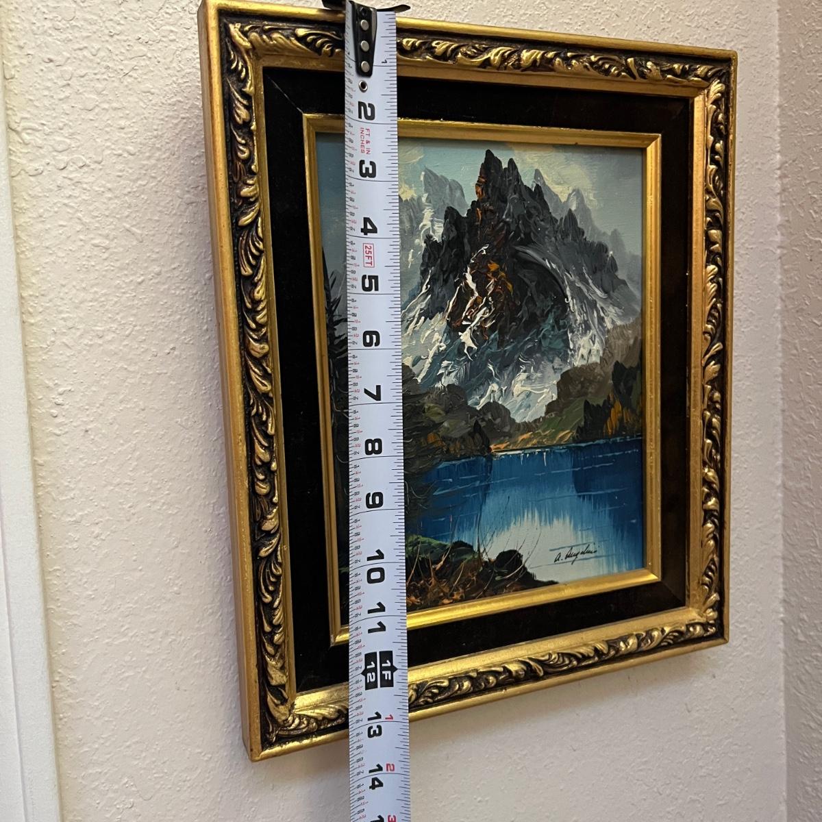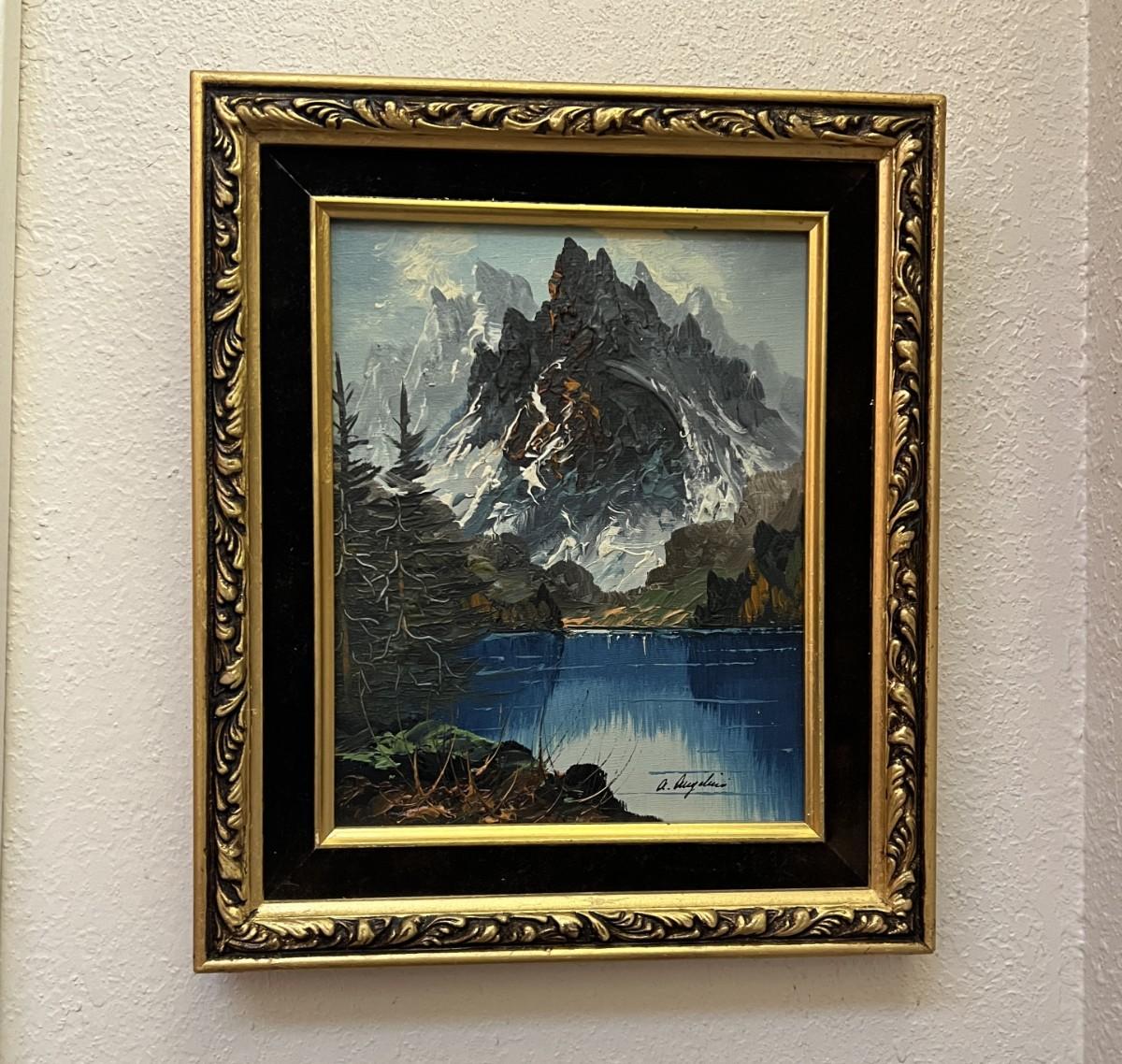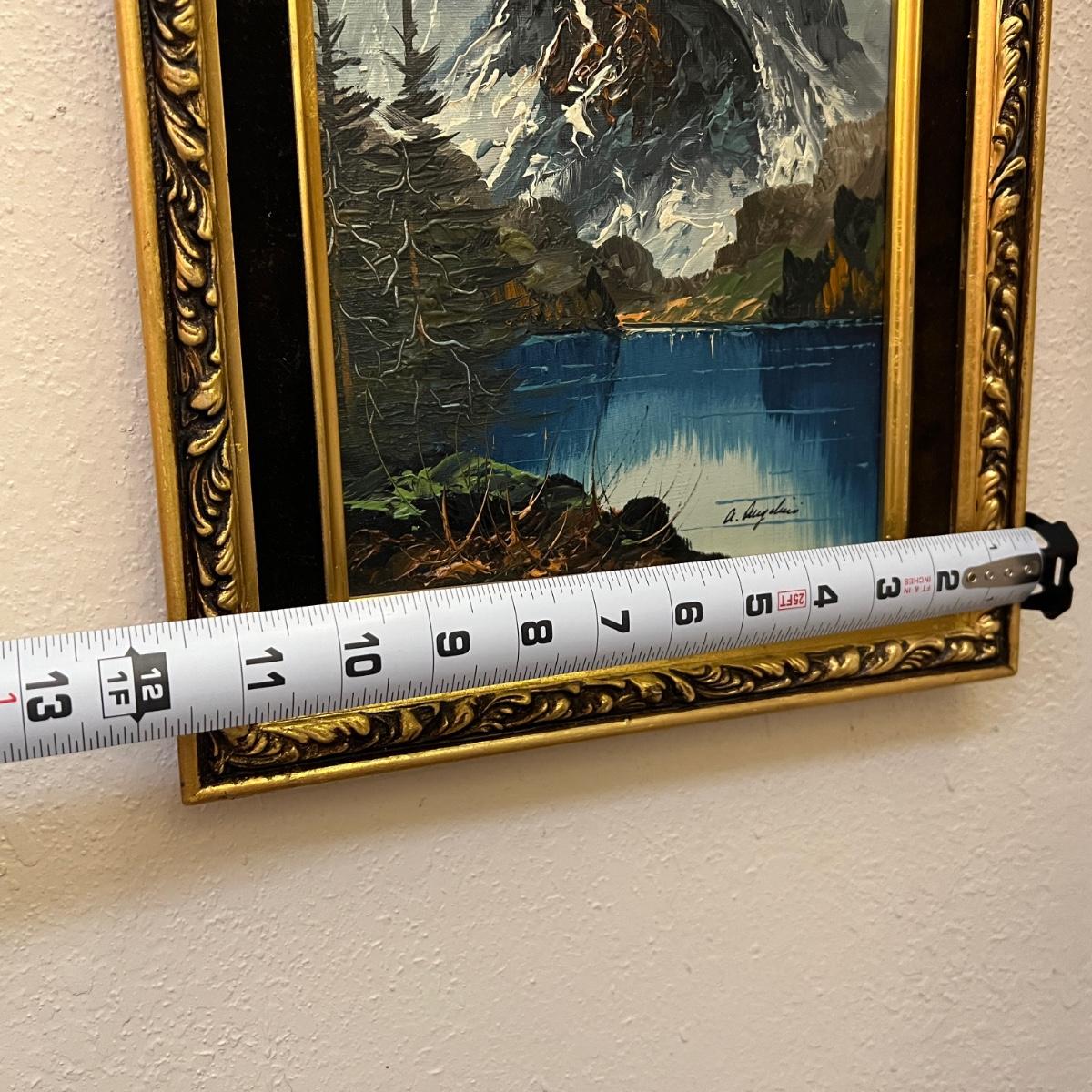 Signed Original Landscape Painting of Mountain and Lake with Partial Snow