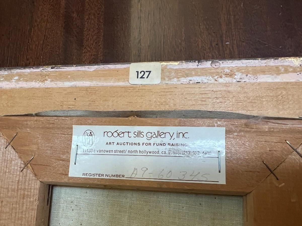 Signed Original Landscape Painting of Mountain and Lake with Partial Snow. In good condition, as shown. Further provenance information on the back indicates this art was acquired at a fundraising auction in Hollywood, California at the Robert Sills Gallery, Inc. In good condition, as shown.