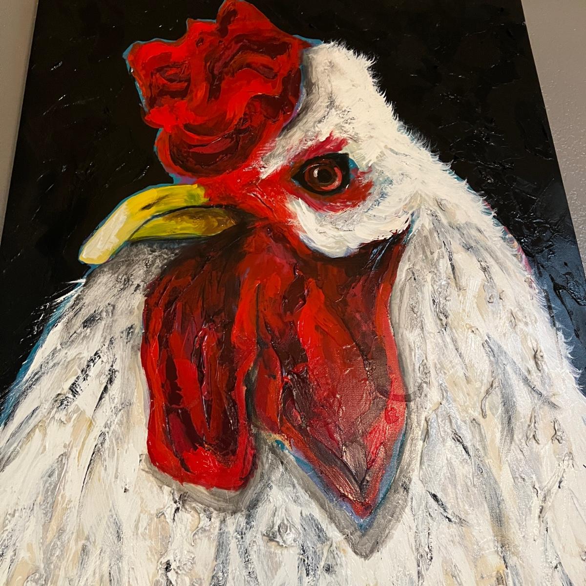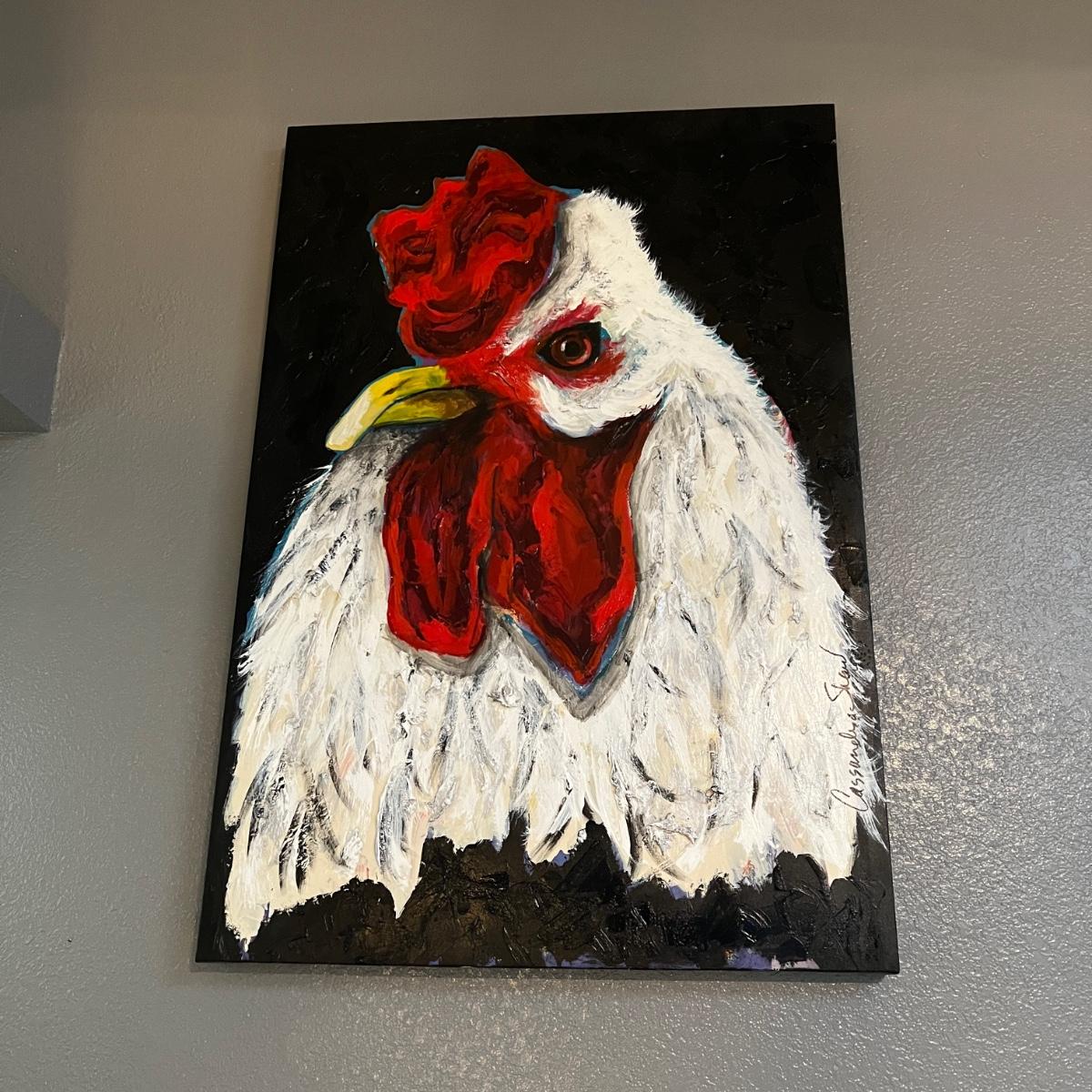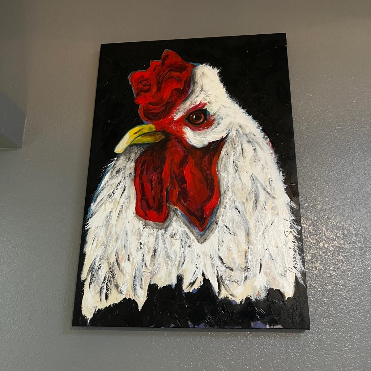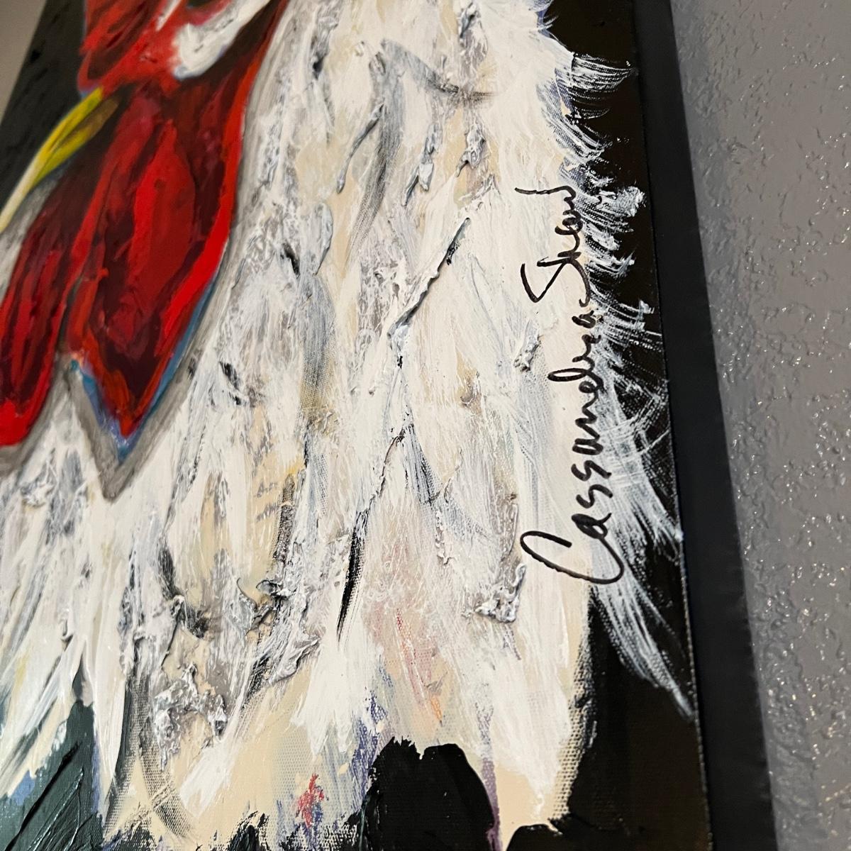 Signed Original Painting of Rooster Chicken by Cassandra Shaw. In good condition, as shown.