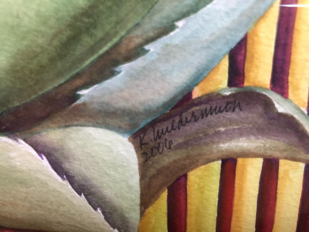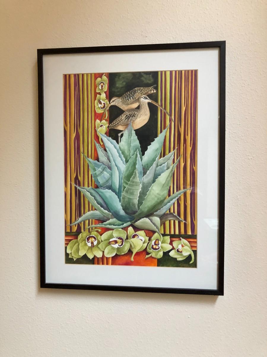 Signed Original Watercolor Art Depicting Birds and Cacti