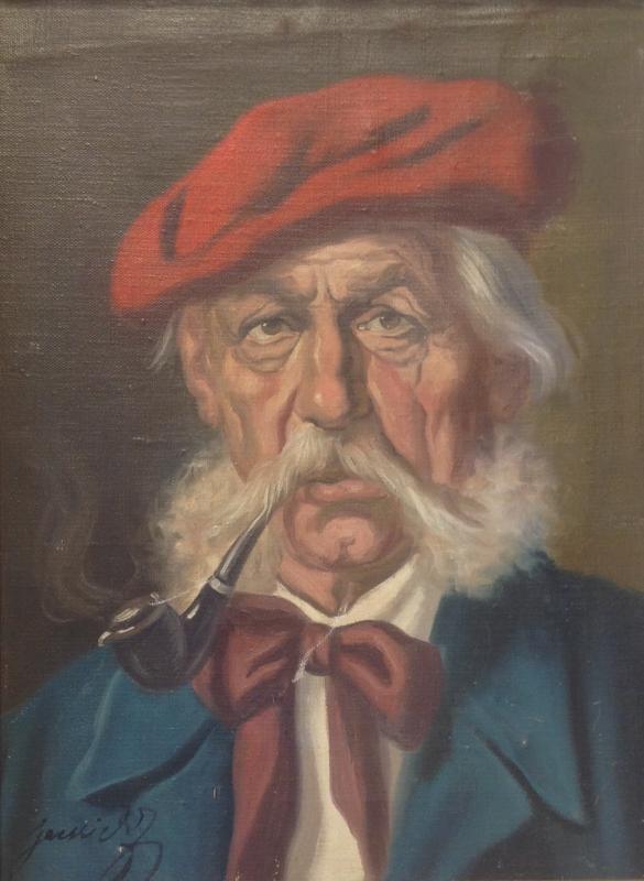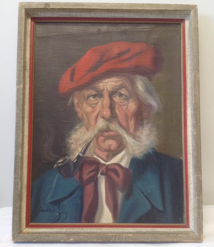 Signed Painting Man Smoking Pipe Portrait 18 x 14