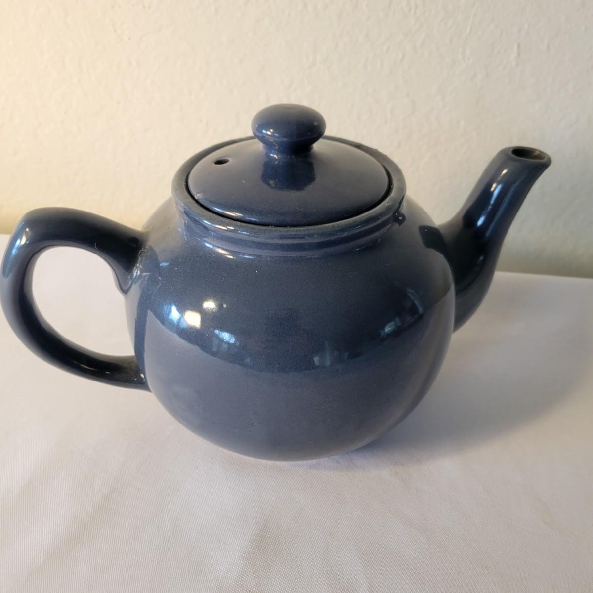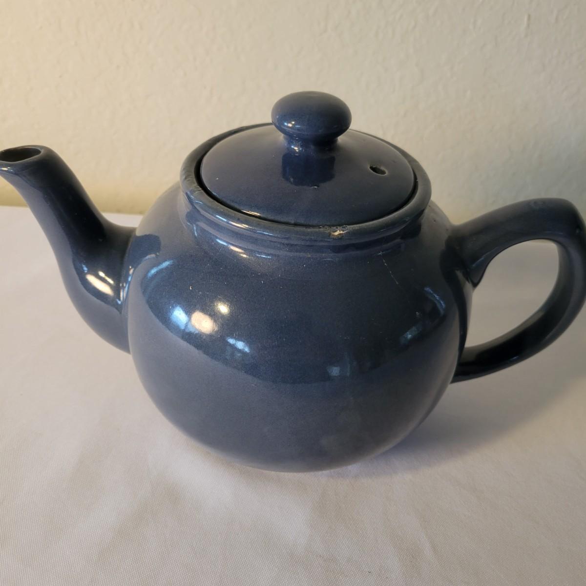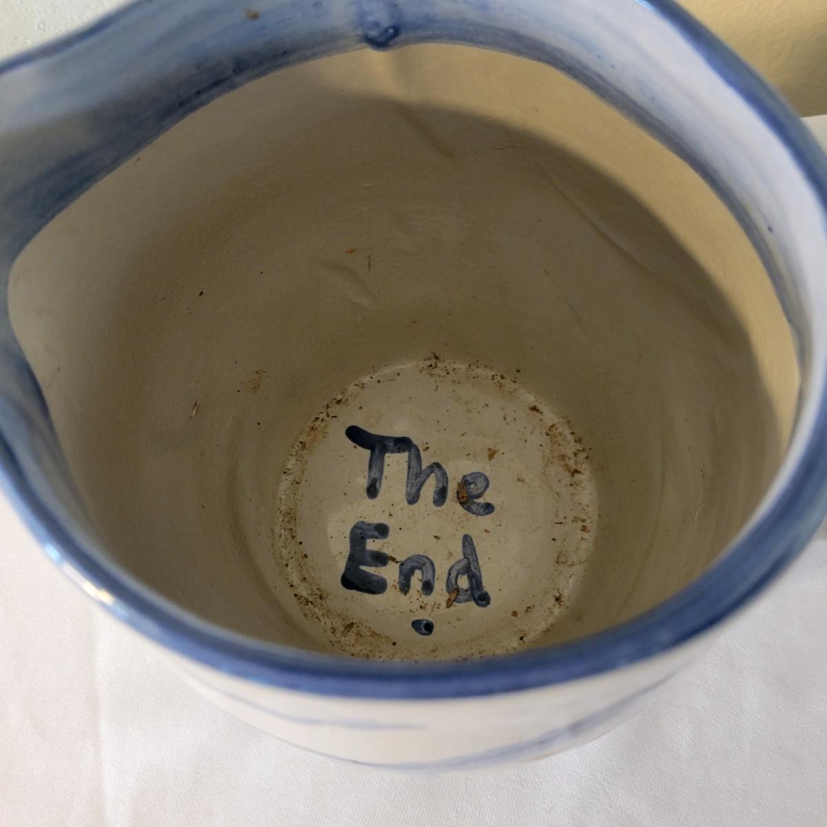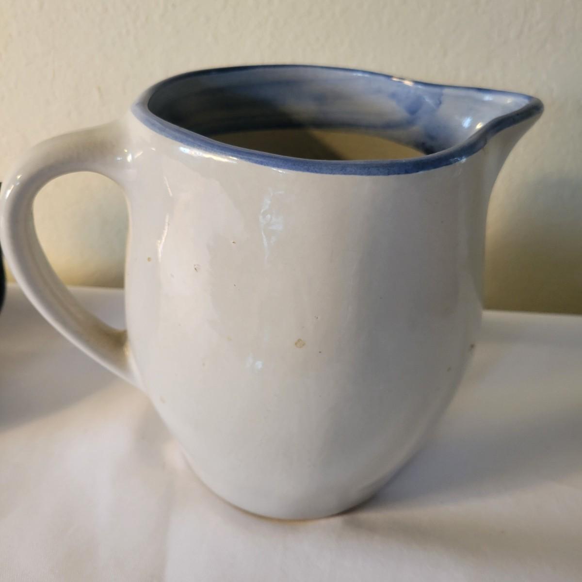 A pitcher and tea pot in good condition. The tea pot does have some minor blemishes. The pitcher appears to be hand painted and features a donkey. It is a glazed pottery piece signed by M.A. Hadley and measures approximately 9" x 5" x 7.5". Also included is a simple ceramic teapot with a blue glaze. Shipping available. Shipping can be costly. We suggest calling our local UPS with dimensions and getting an estimate before bidding: (828) 252-6930