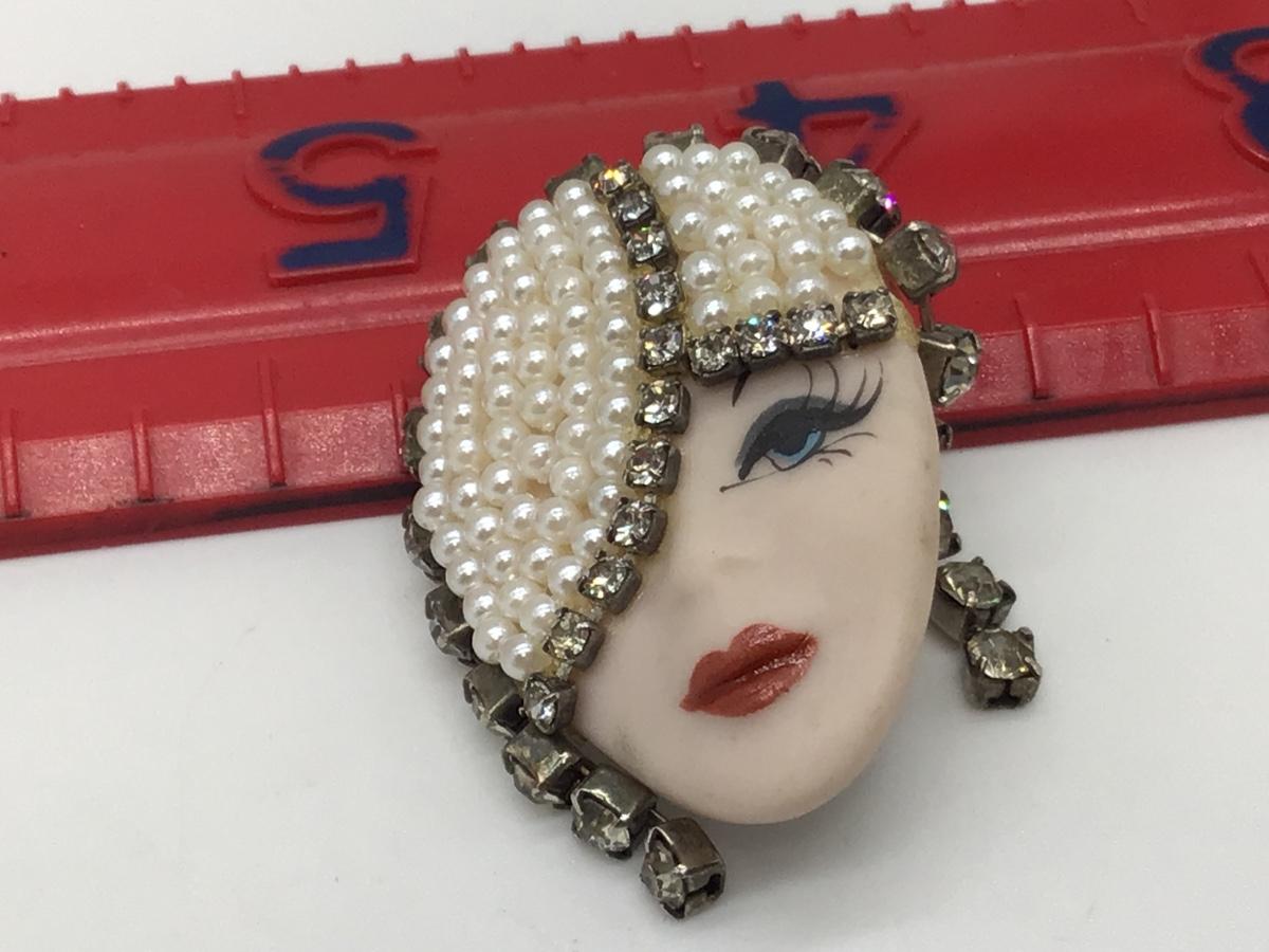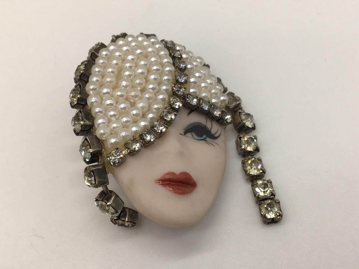 Signed Porcelain Face Brooch