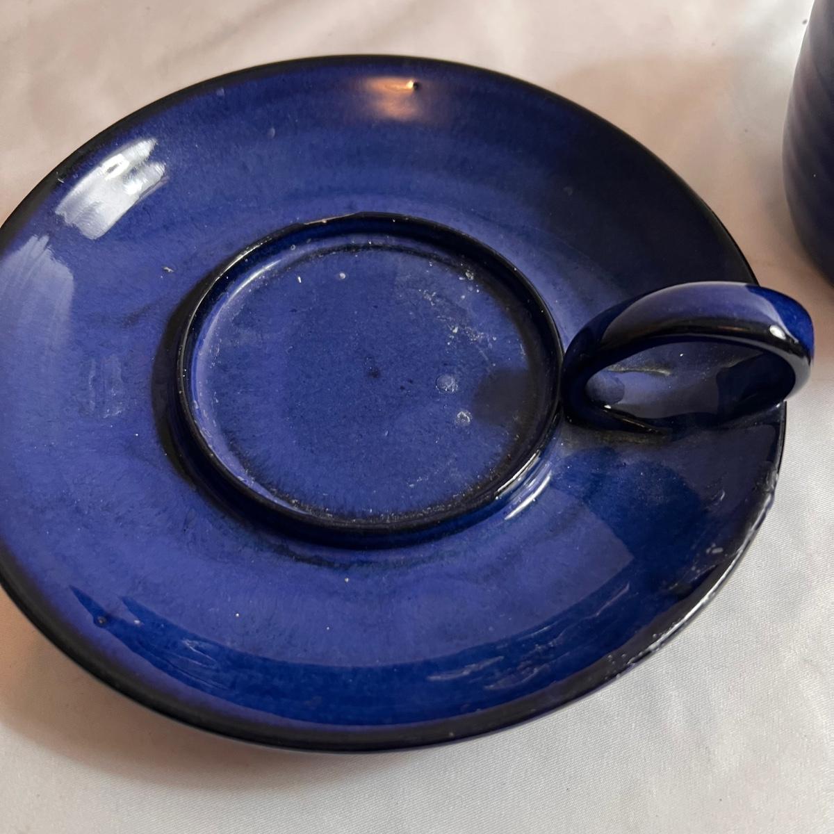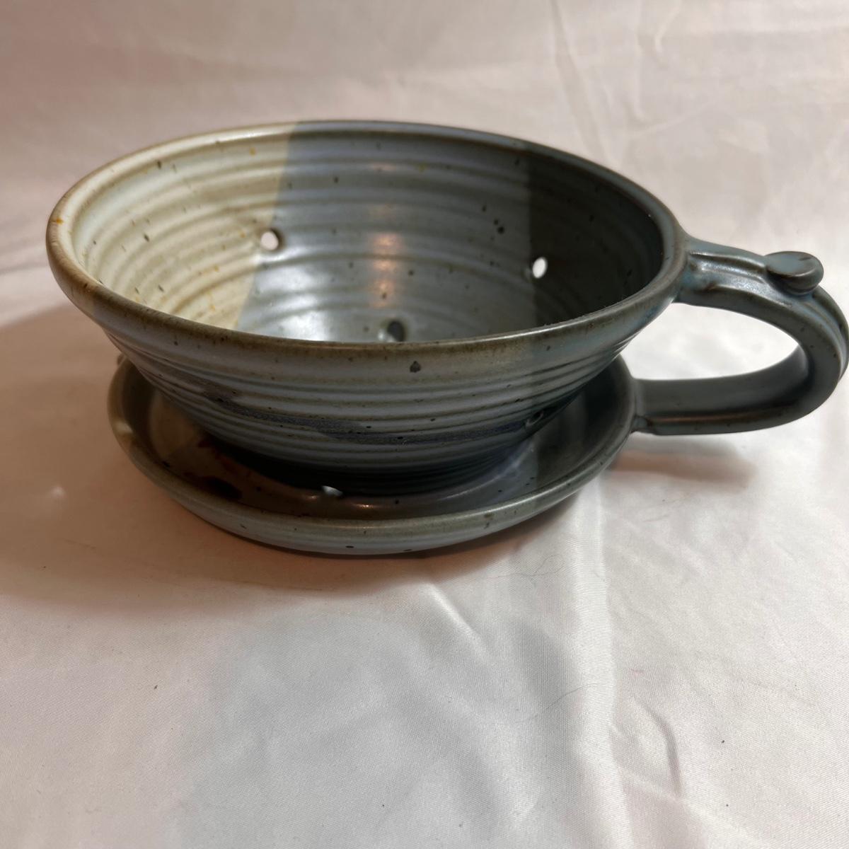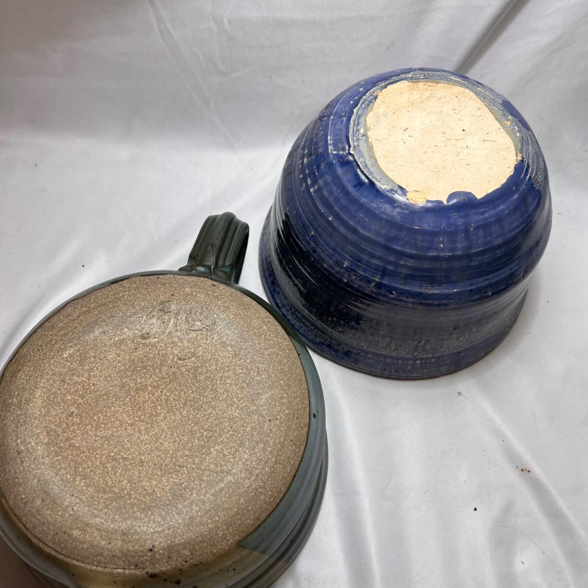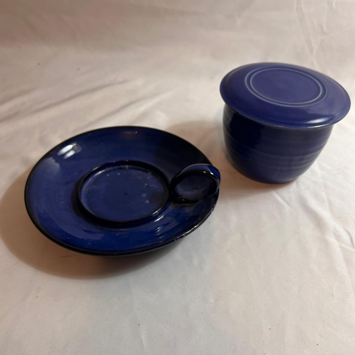 Signed Pottery Berry Strainer & Butter Keeper Plus More Blue Pottery (K-RG)