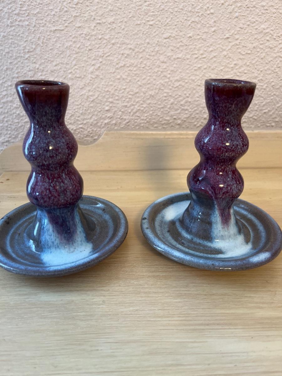 Signed pottery candlesticks