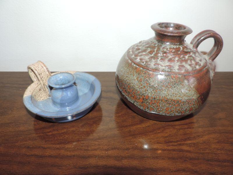 LOT 10  SIGNED JUG & CANDLE HOLDER